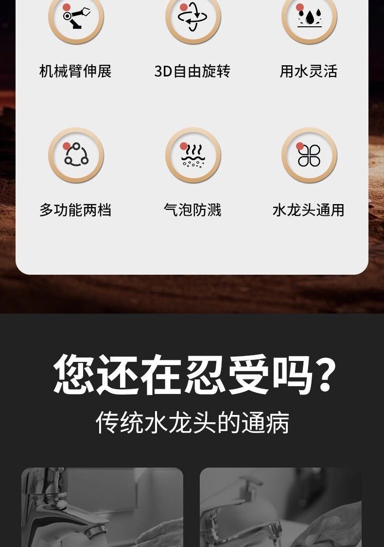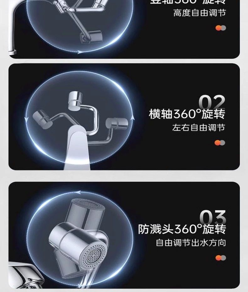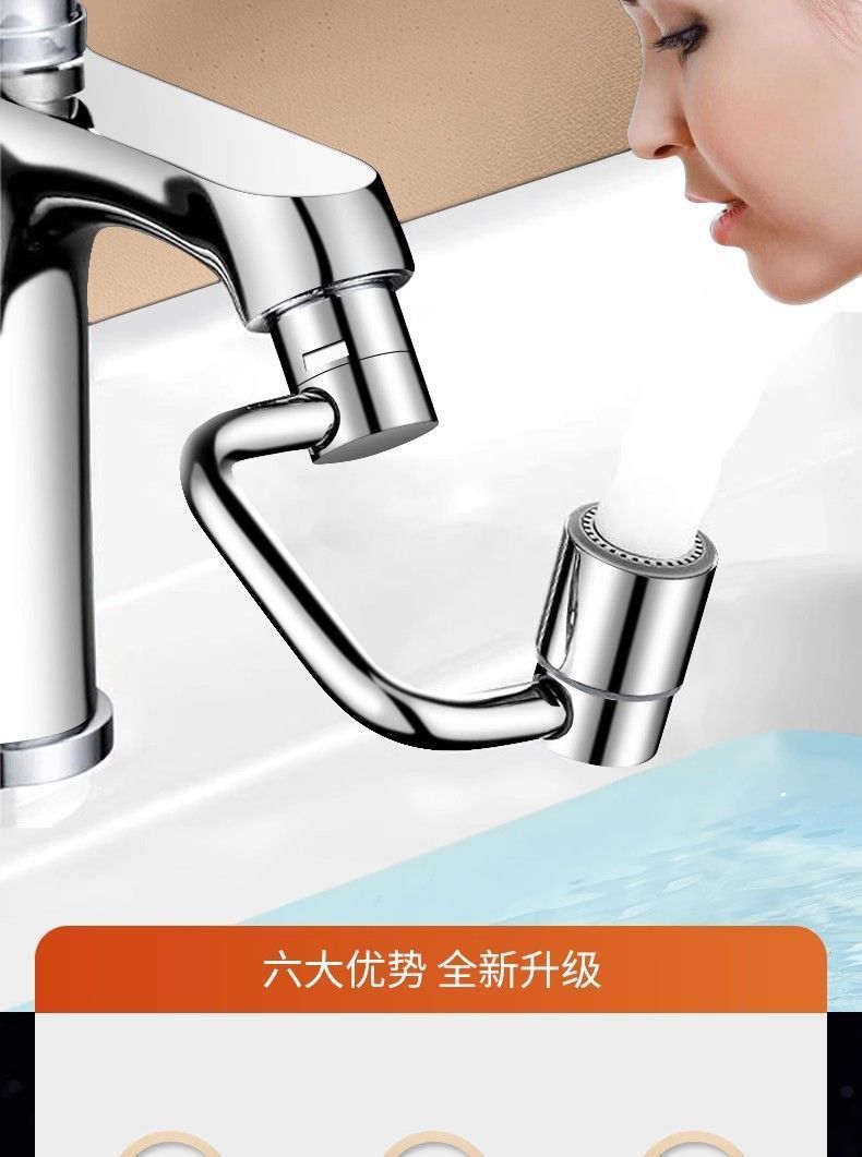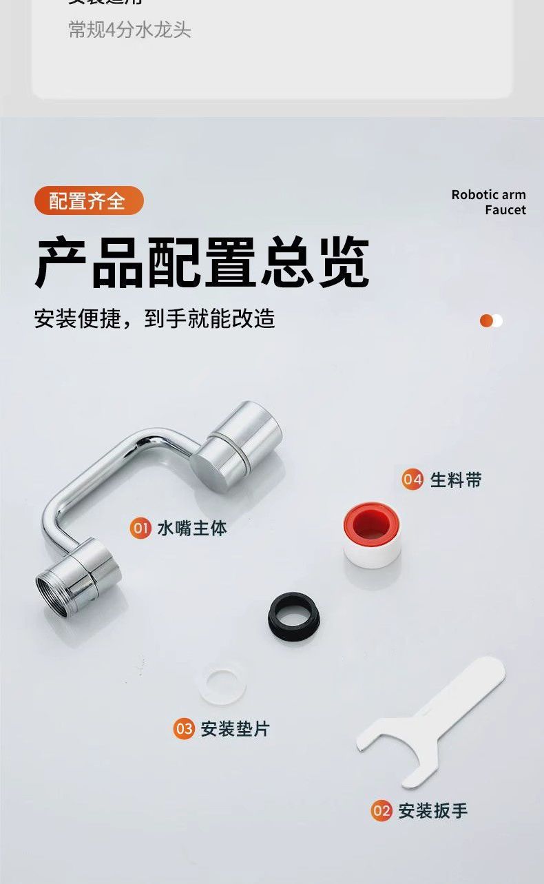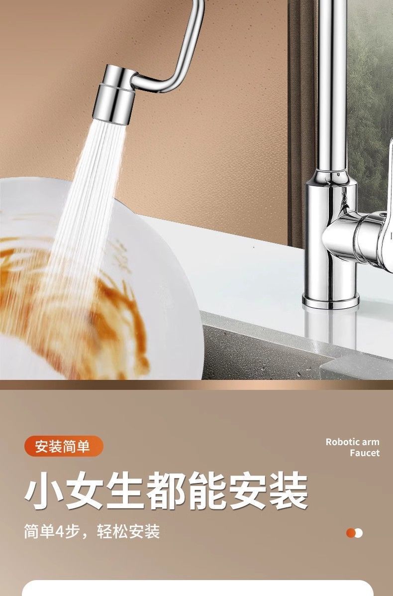 Универсальный смеситель с роботизированной рукой и поворотным удлинителем излива, разъемом для аэратора, брызгозащитным поворотным рычагом и другими деталями.
