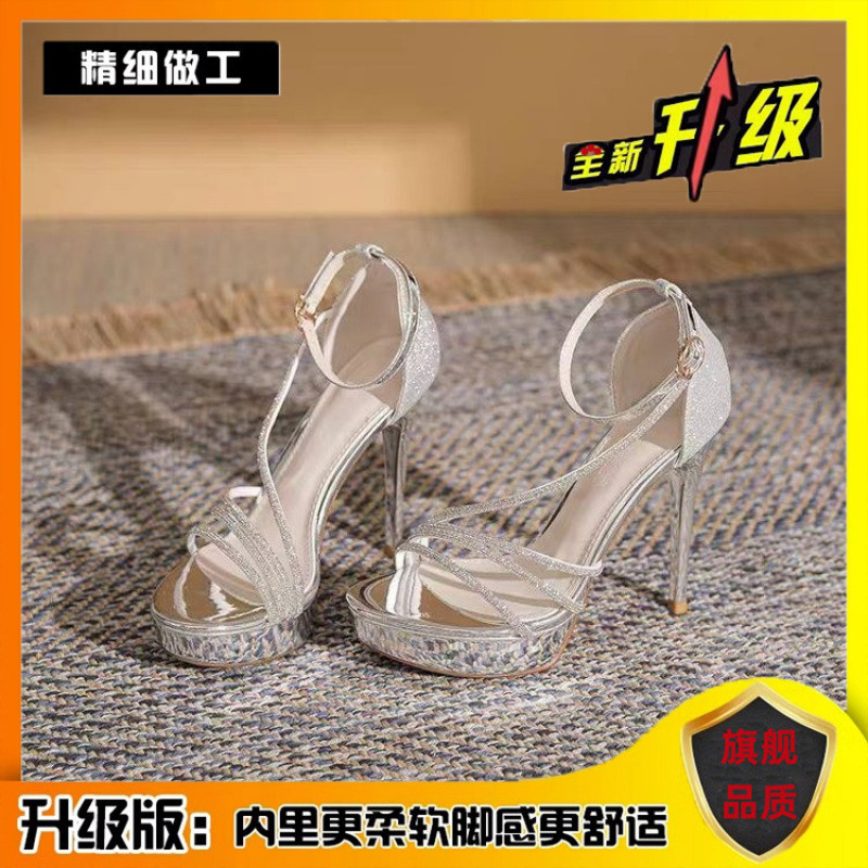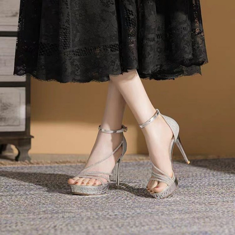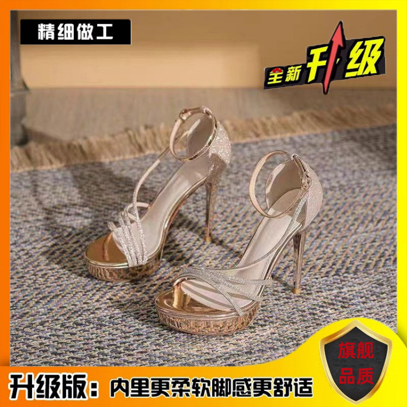 Женские сексуальные мягкие кожаные сандалии с социальными стразами во французском стиле, ультравысокие туфли на высоком каблуке-шпильке на платформе 11 см.