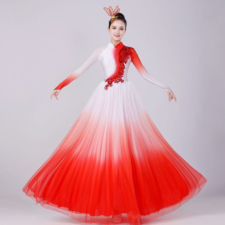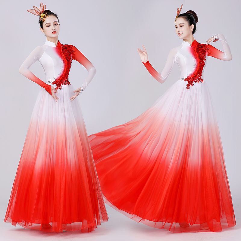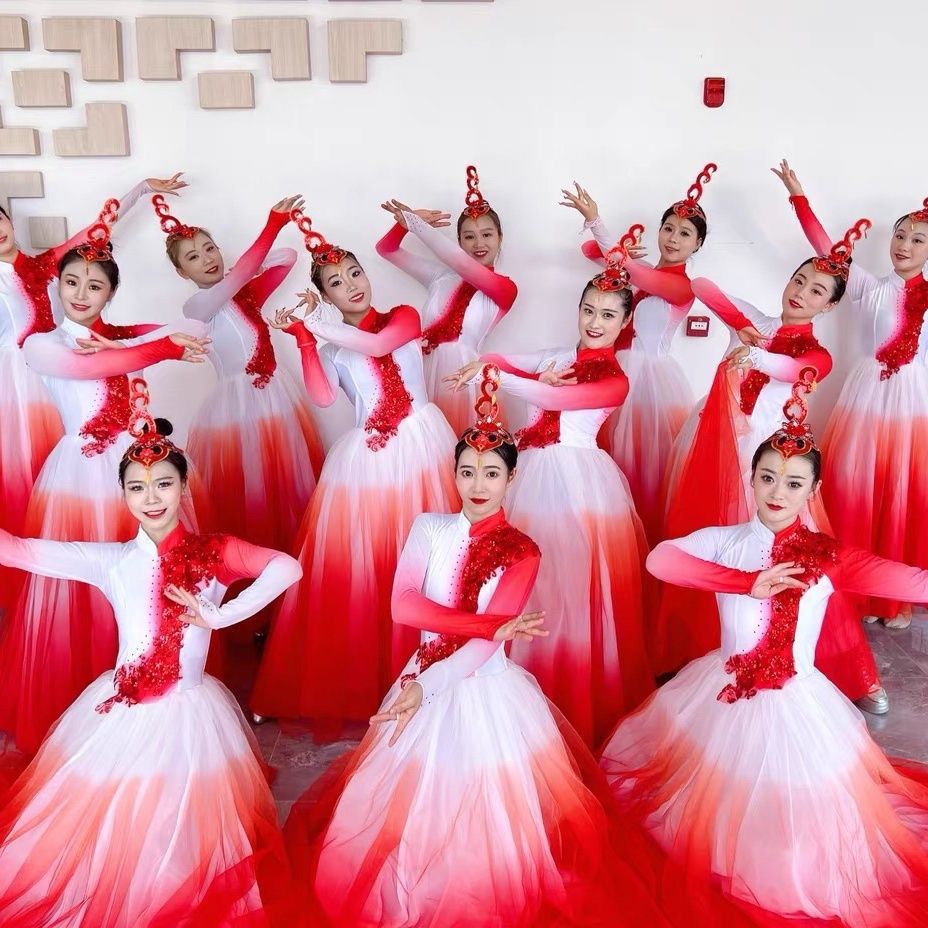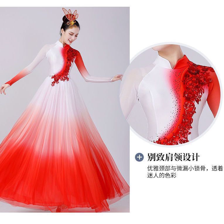 Современный танец, новый стиль, открывающиеся огни Wanjiang, атмосферный китайский танец, большая распашная юбка, танцевальный костюм, песня и танец, длинная юбка