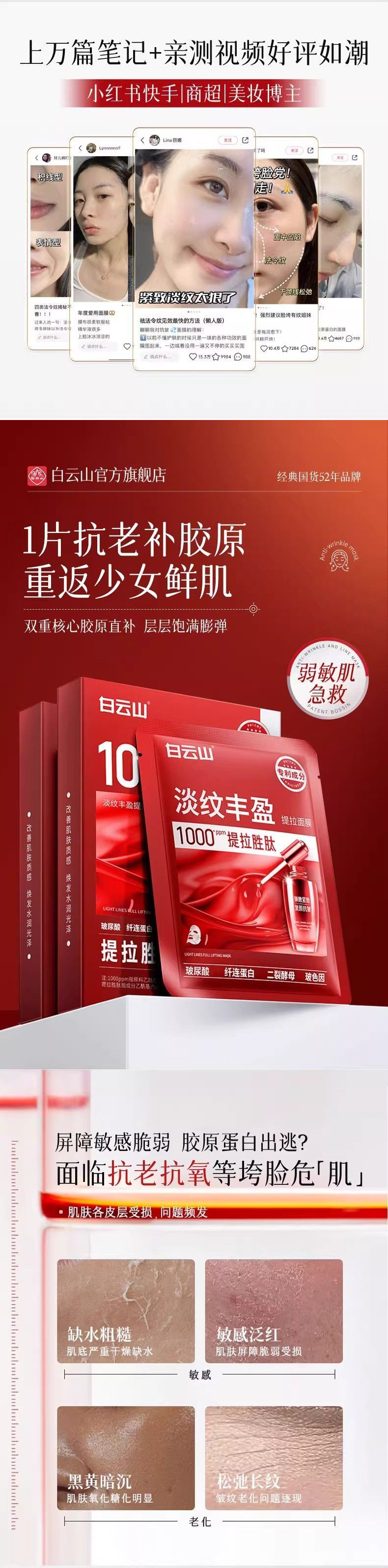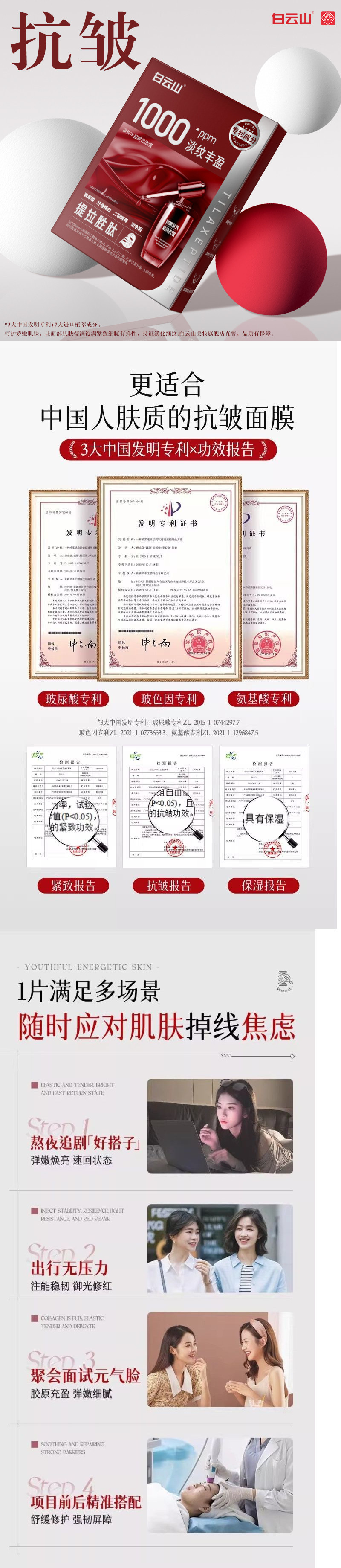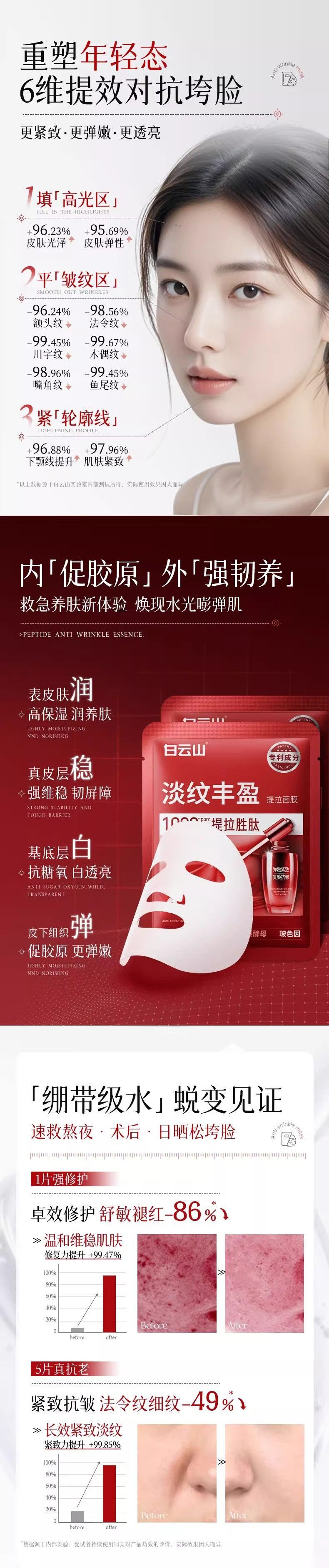 Осветляющая и упругая маска Baiyunshan Bose, антивозрастная, укрепляющая, лифтинговая, упругая маска с гиалуроновой кислотой