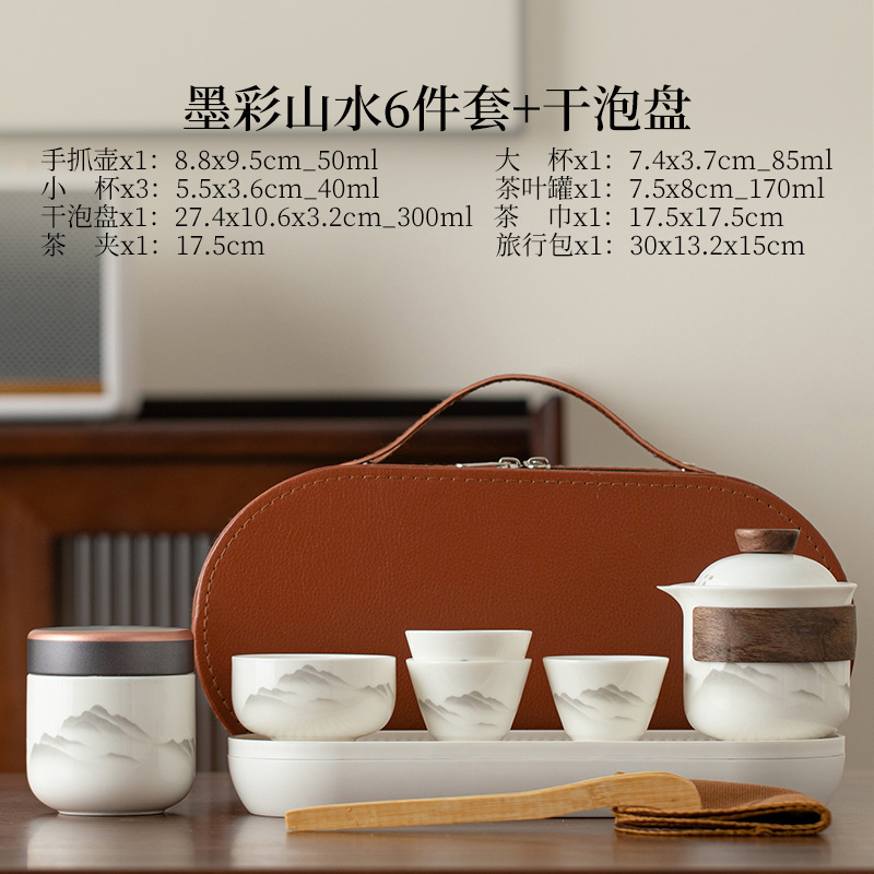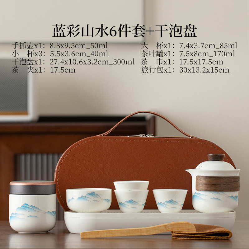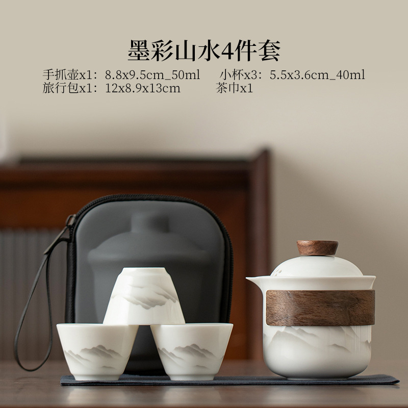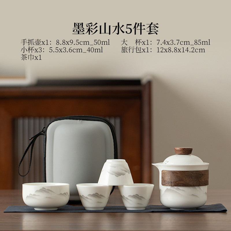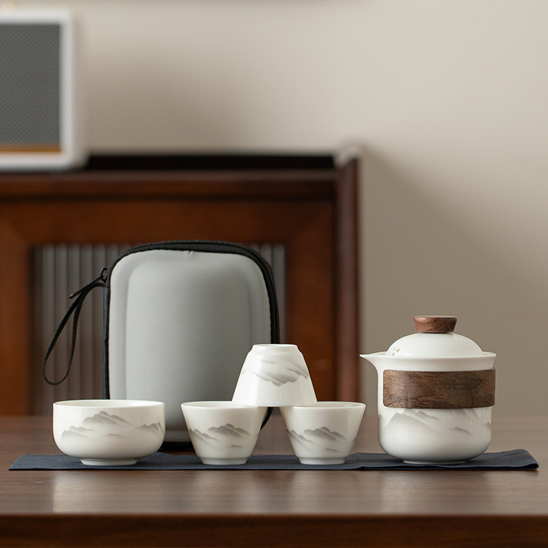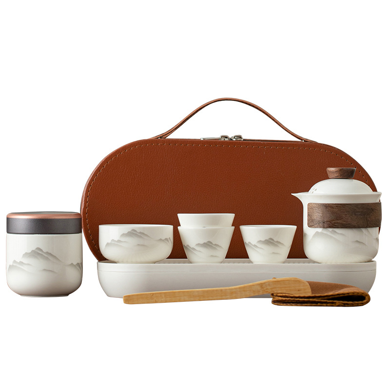 Пейзажный дорожный чайный сервиз из нефритового фарфора с бараньим жиром