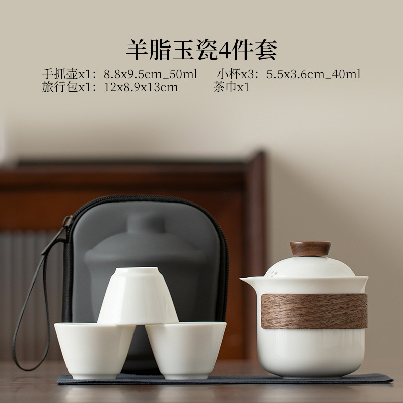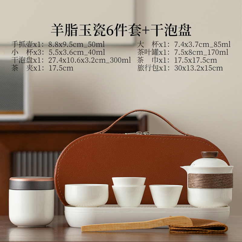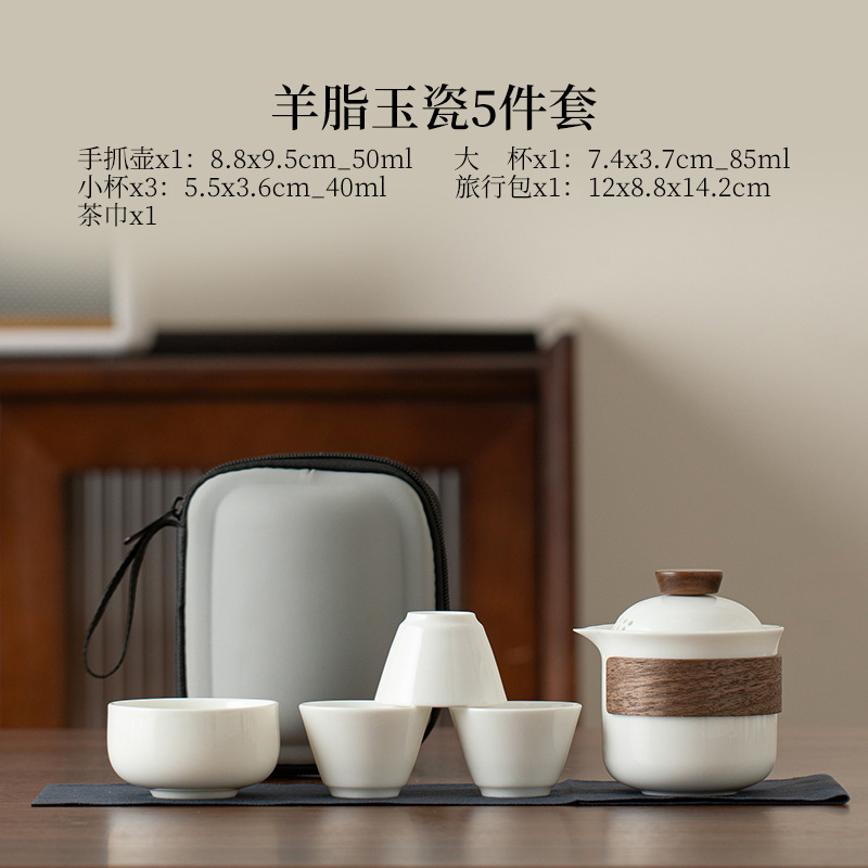 Овечий жир нефритовый фарфоровый чайный набор кунг-фу на открытом воздухе портативный чайный набор для путешествий
