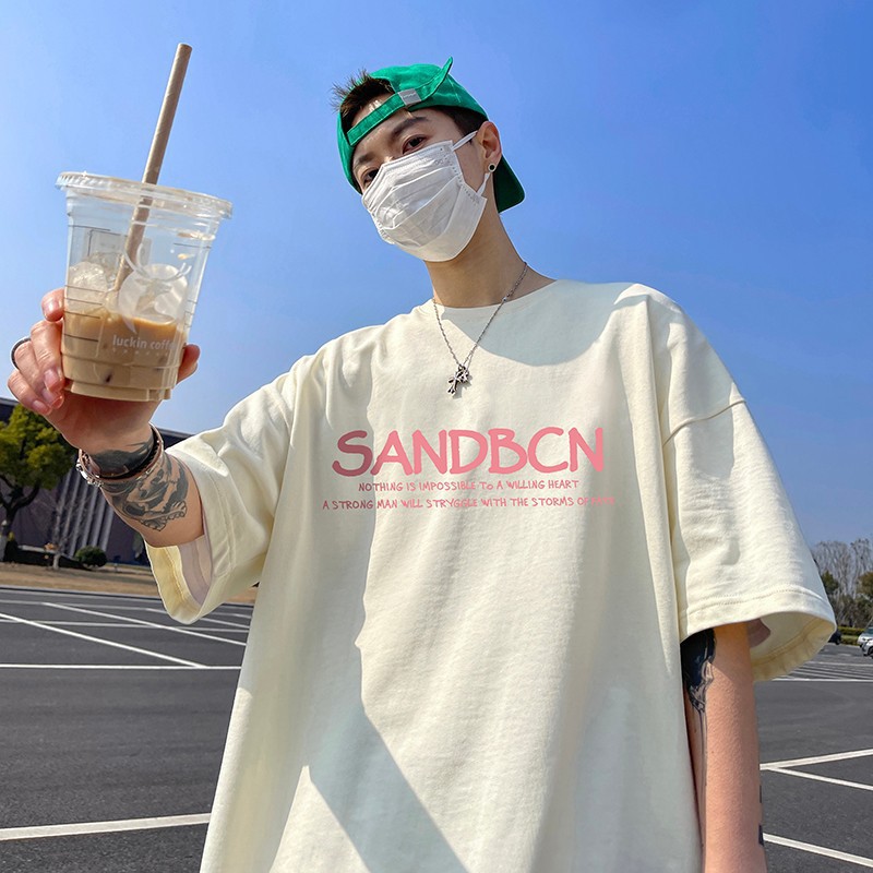 Футболка с короткими рукавами, мужская летняя американская модная свободная студенческая тяжелая модная брендовая футболка большого размера с половиной рукавов, универсальная одежда