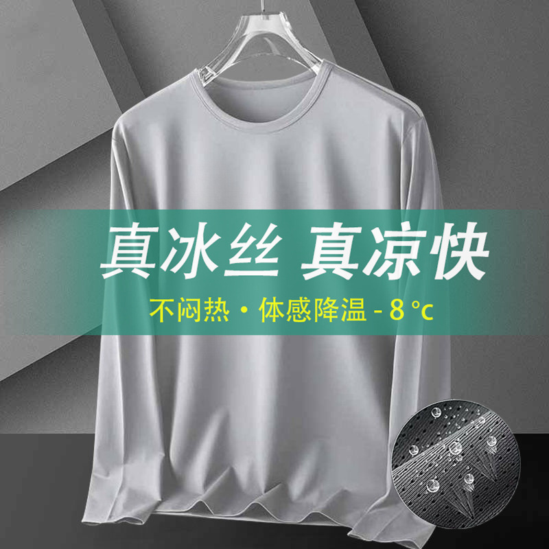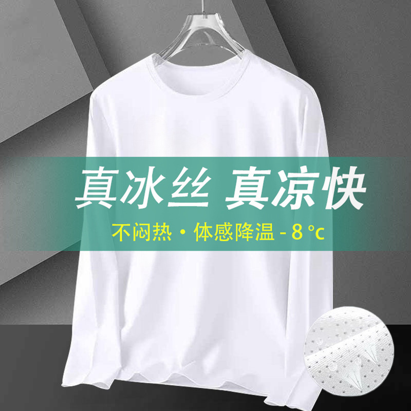 Мужская летняя футболка из тонкой сетки из ледяного шелка с длинными рукавами, свободная, дышащая, быстросохнущая, мужская длинная футболка с длинными рукавами для защиты от солнца на открытом воздухе.