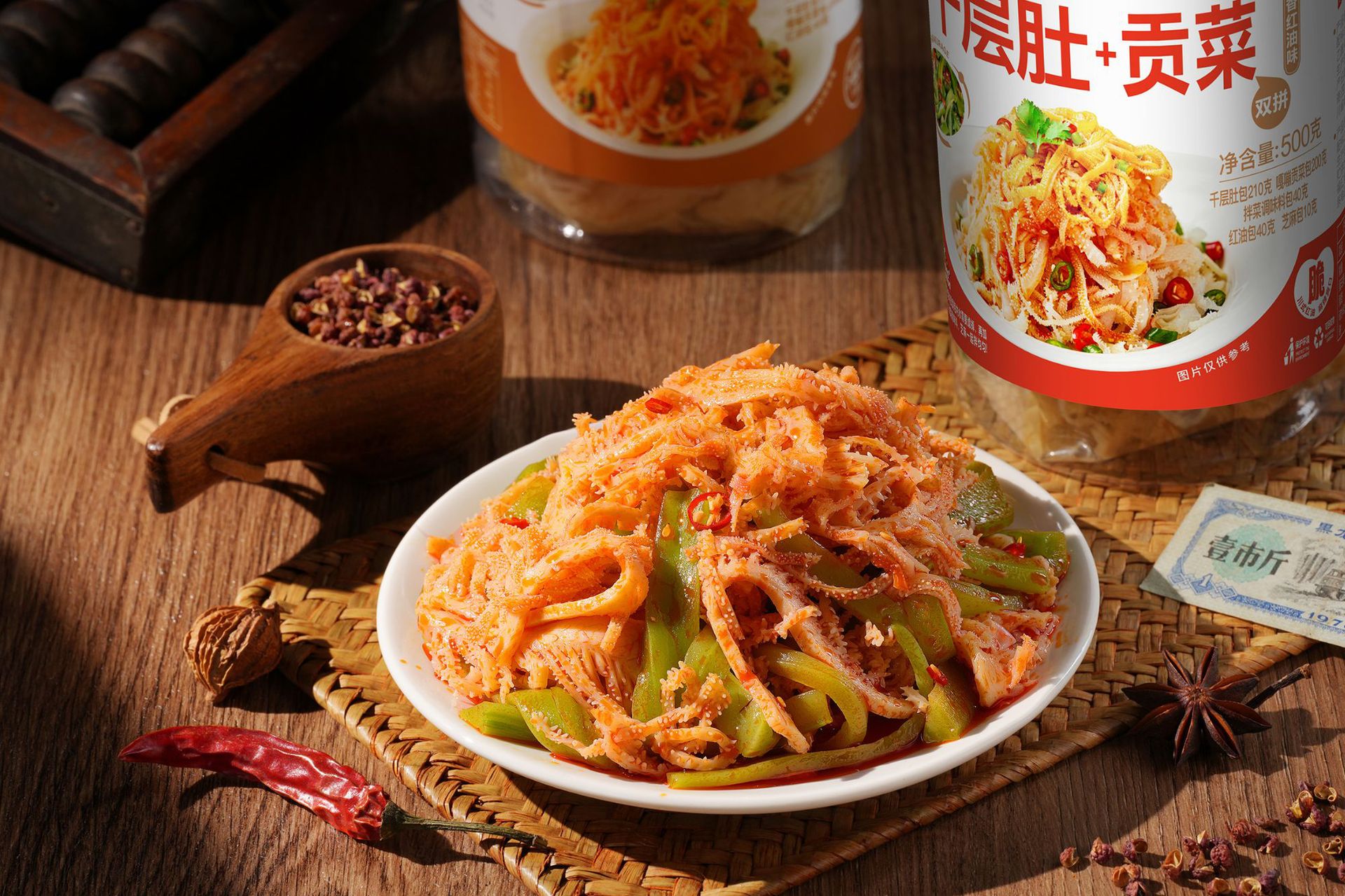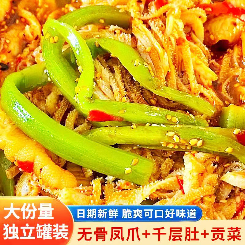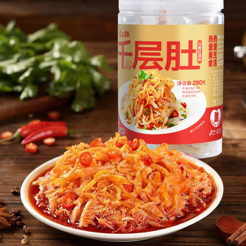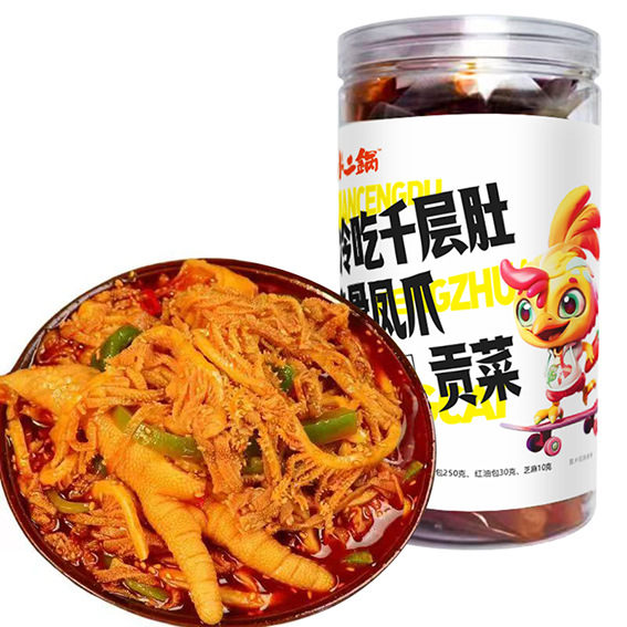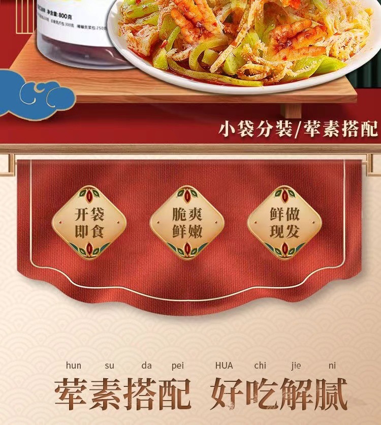 Холодная миль-фуэль, куриные лапки и гонгцай «три в одном» с пряным красным маслом Сычуань — моментальная закуска для поздних ночей.