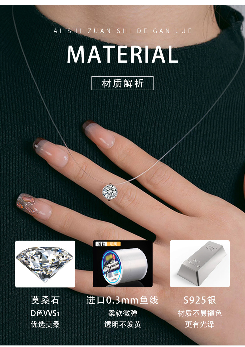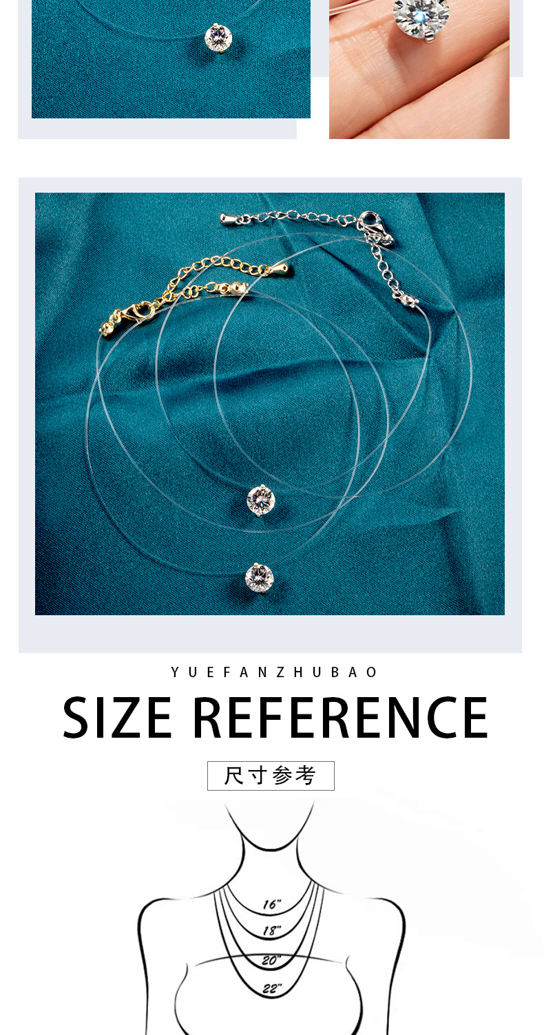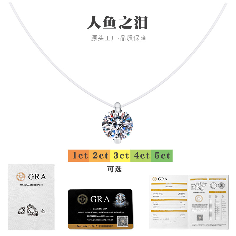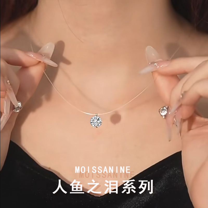 Серебряное ожерелье s925 «Слезы русалки» с муассанитом 2 карата, универсальная цепочка на ключицу, изысканная прозрачная невидимая подвеска на леске