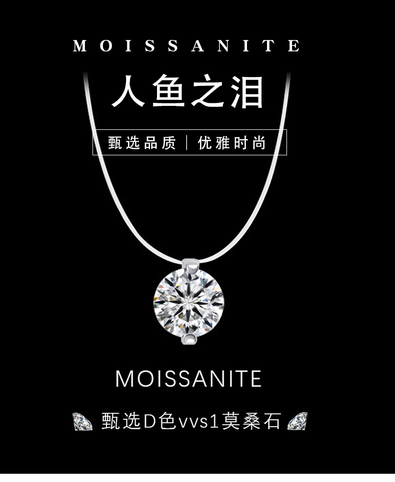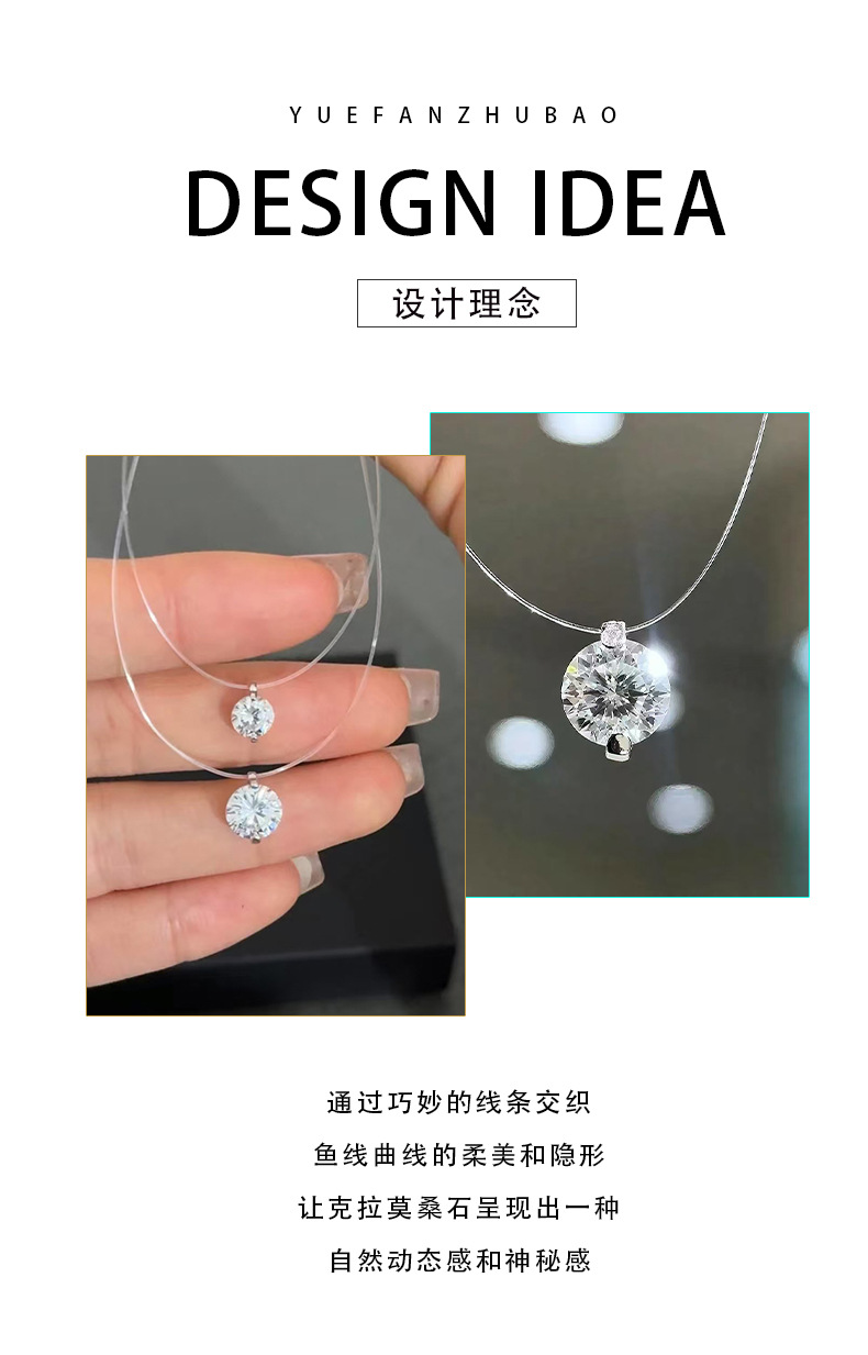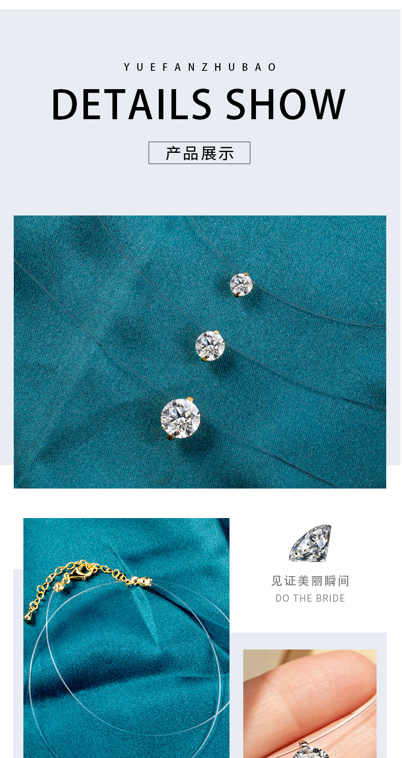 Серебряное ожерелье s925 «Слезы русалки» с муассанитом 2 карата, универсальная цепочка на ключицу, изысканная прозрачная невидимая подвеска на леске