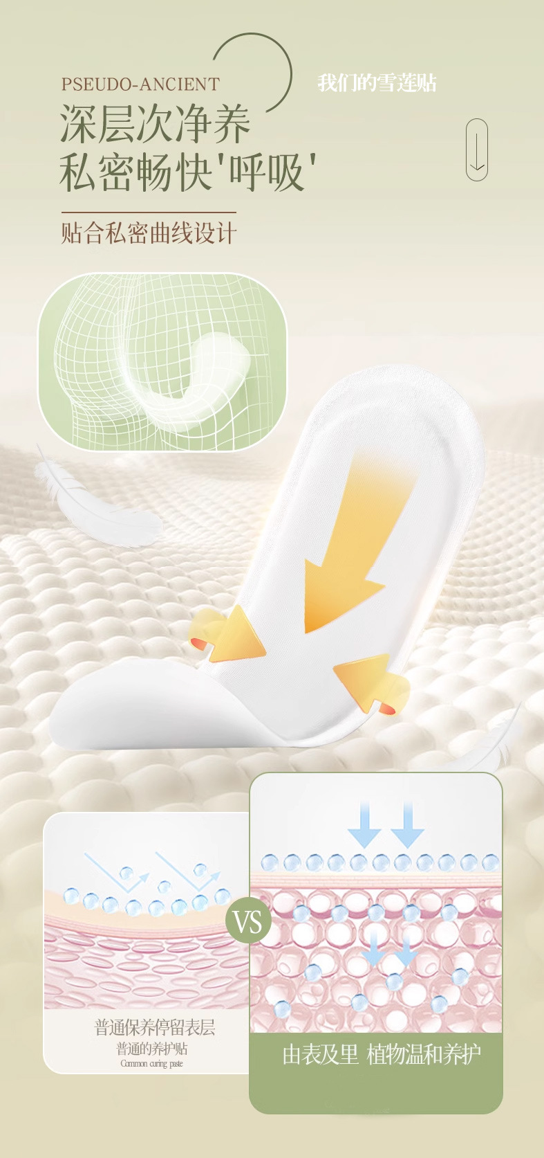Женские пластыри с экстрактом снежного лотоса для интимной гигиены, на растительной основе, дышащие, антибактериальные, устраняющие запах, освежающие и подтягивающие.