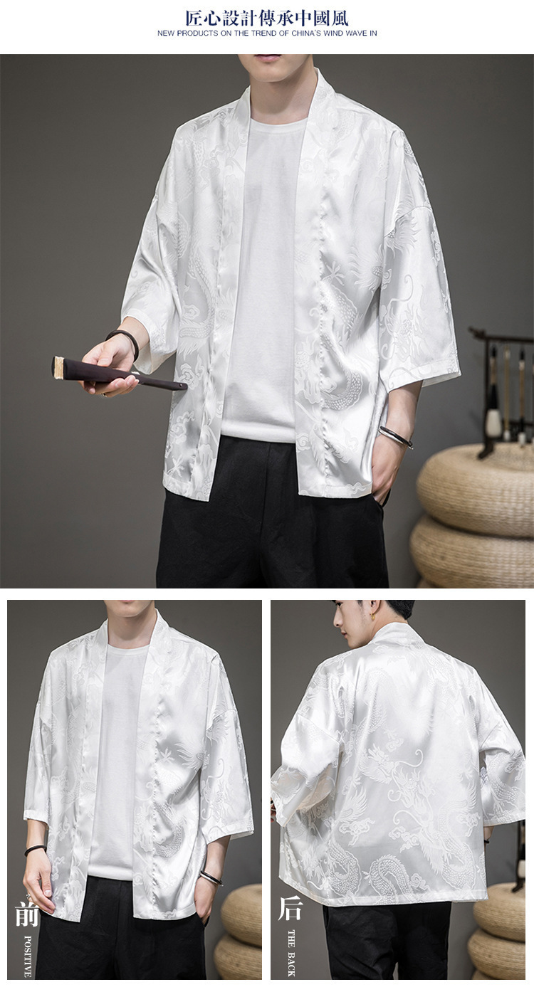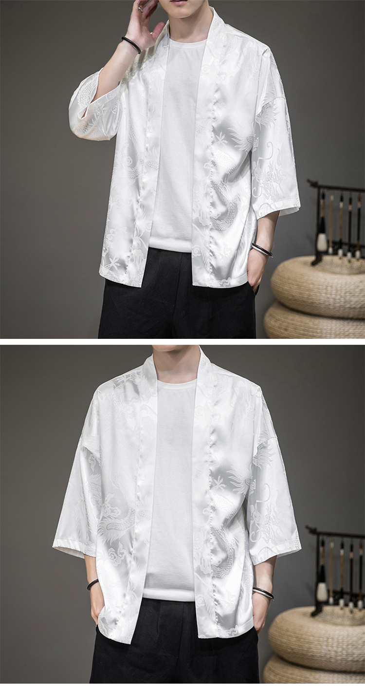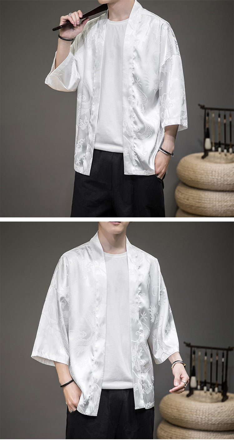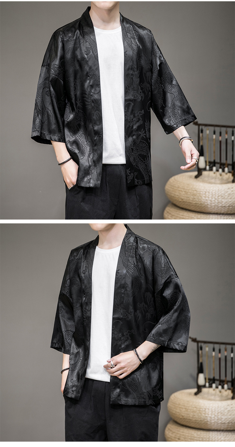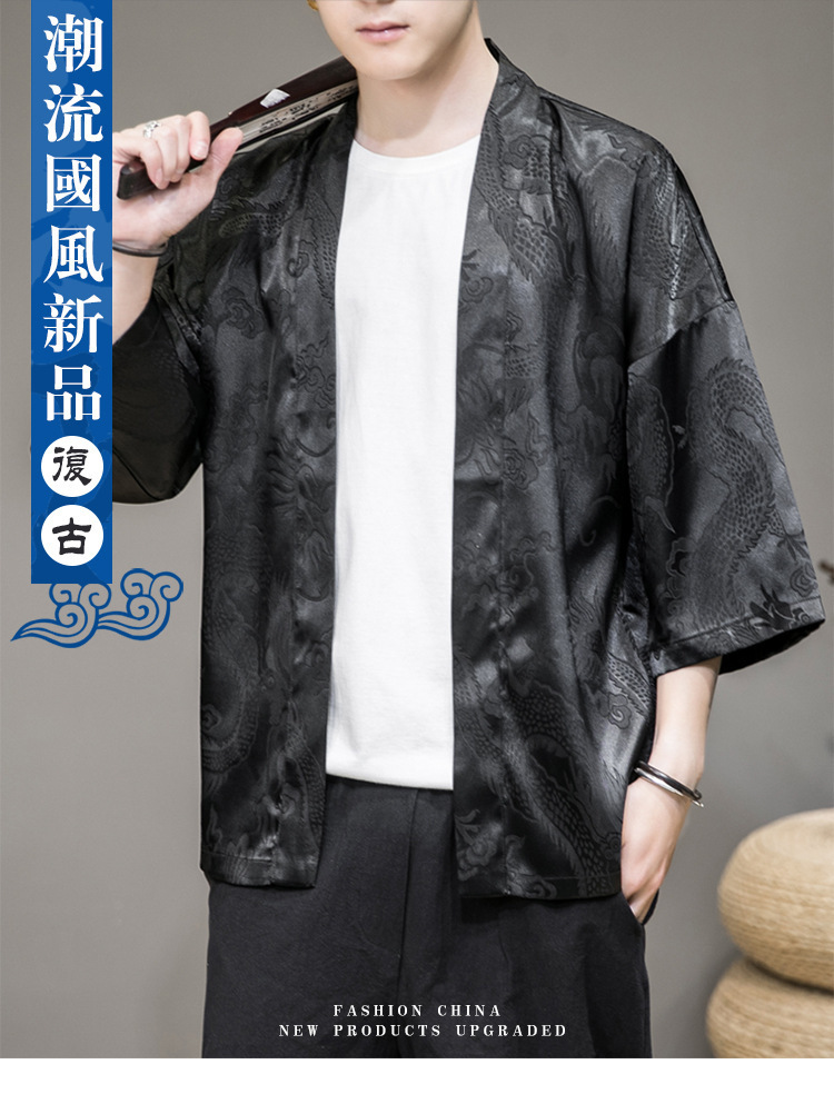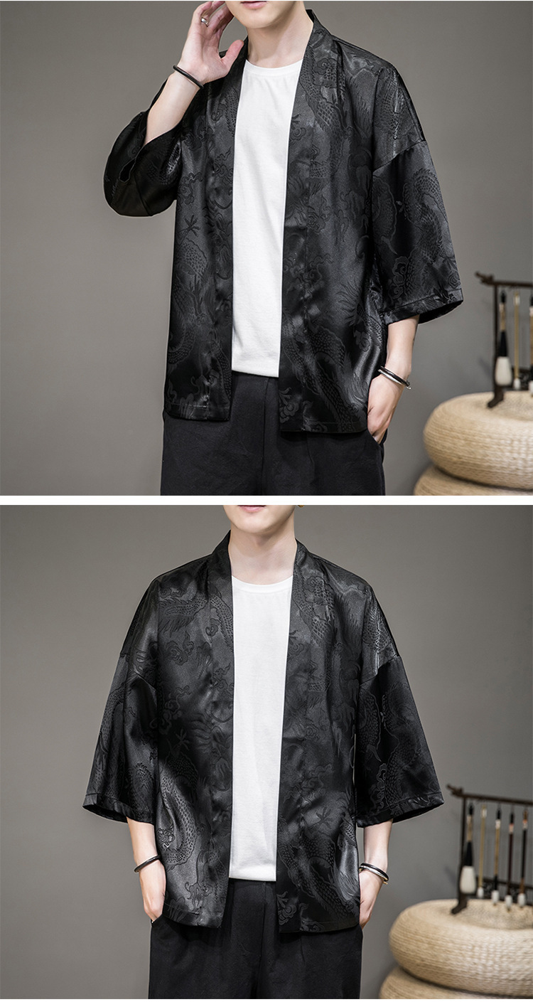 Летний древний костюм в китайском стиле, новый солнцезащитный кардиган из ледяного шелка, мужской халат с рисунком дракона, темный цветок, плащ, куртка, мужская оптовая продажа