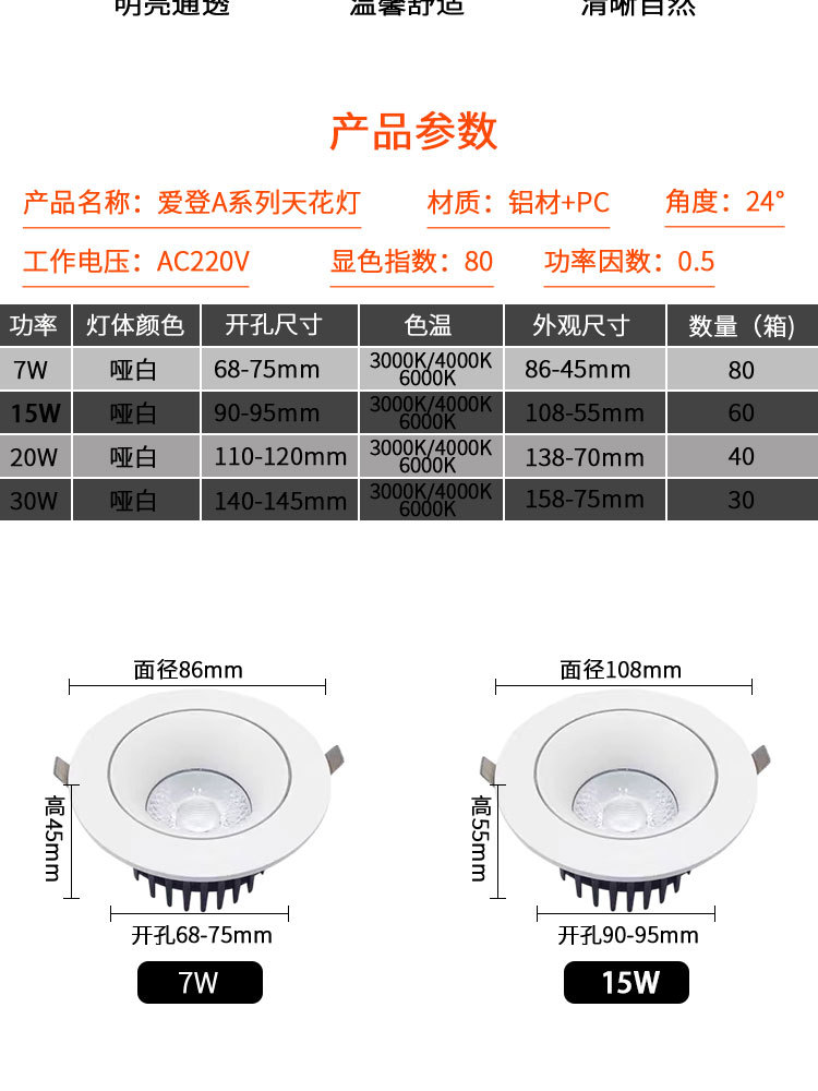 Прожектор встраиваемый литой 7Вт-отверстие 68-75; Прожектор встраиваемый литой 15Вт-отверстие 90-95; Прожектор литой встраиваемый 20Вт-отверстие 110-120; Прожектор встраиваемый литой 30Вт-отверстие 140-14