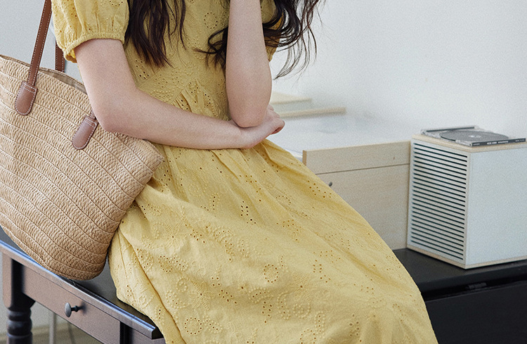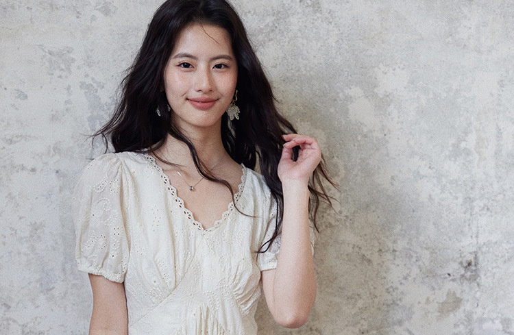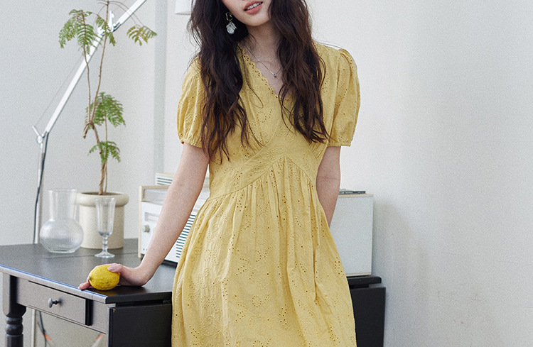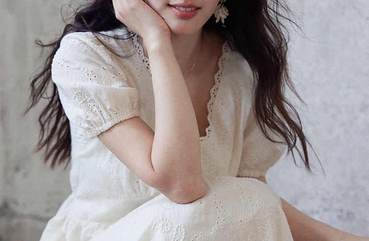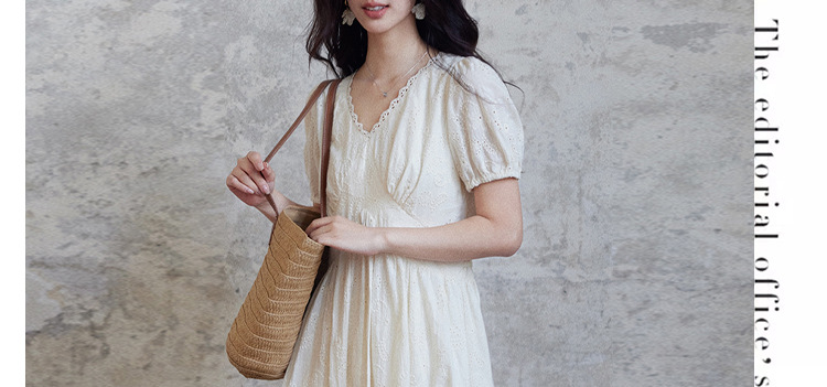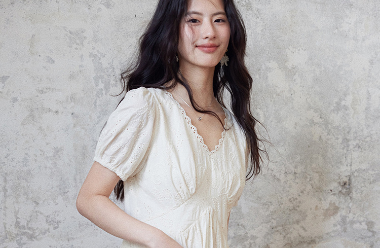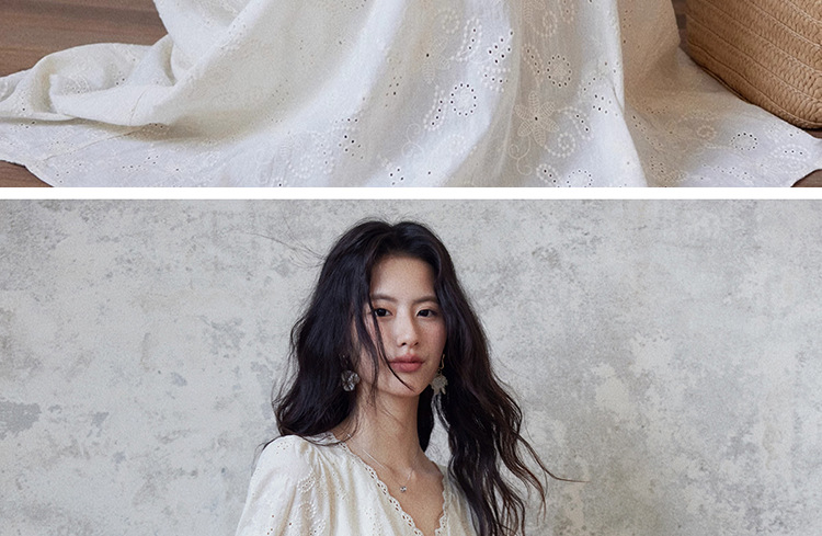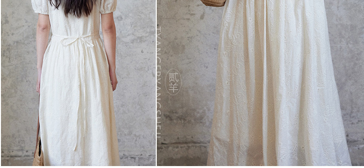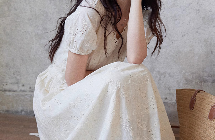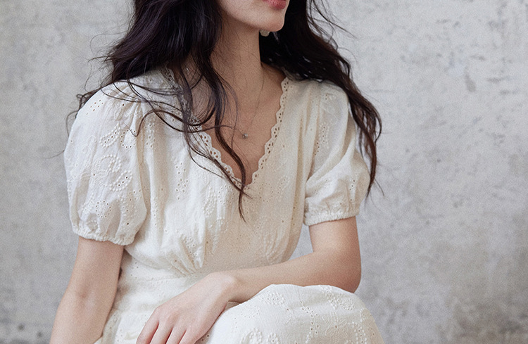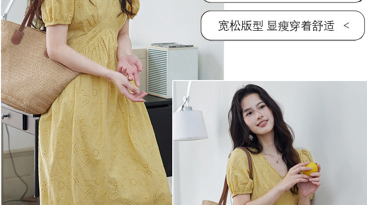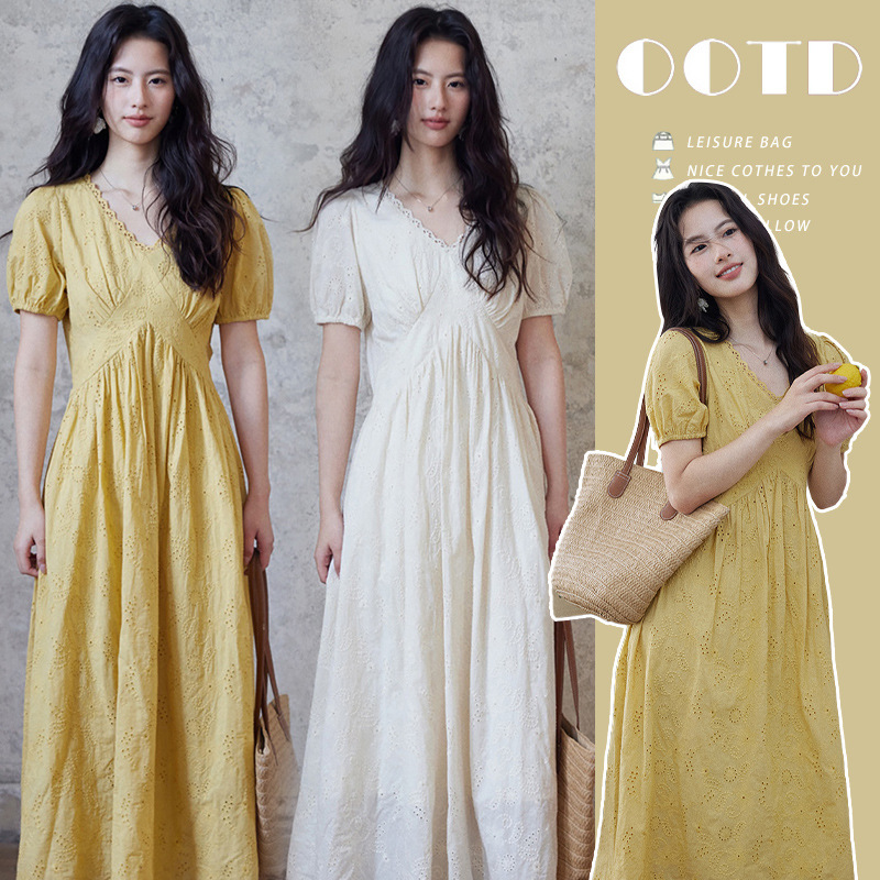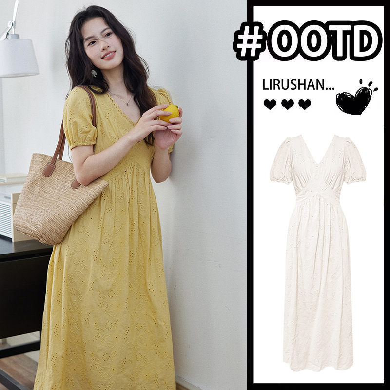 Летнее платье 2025 года для кормящих мам, нежный стиль, V-образный вырез, тяжелая вышивка, ажурная талия, стройнящее.