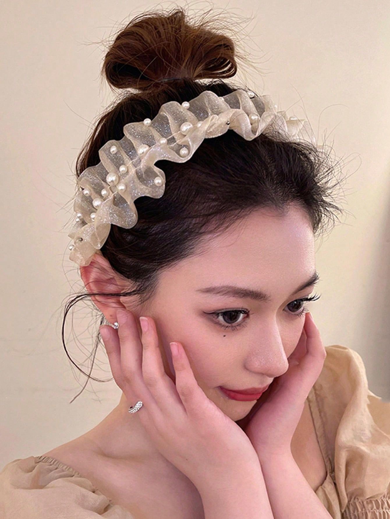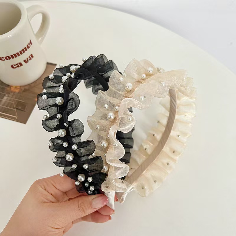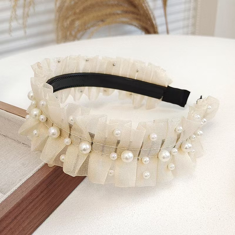 Элитная повязка для волос из жемчужной сетки, универсальная, модная, изысканная и элегантная заколка, фактурная женская повязка, новые аксессуары для волос оптом