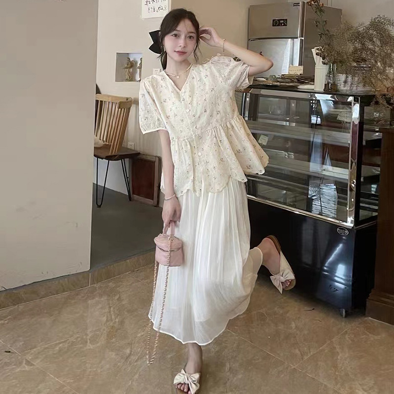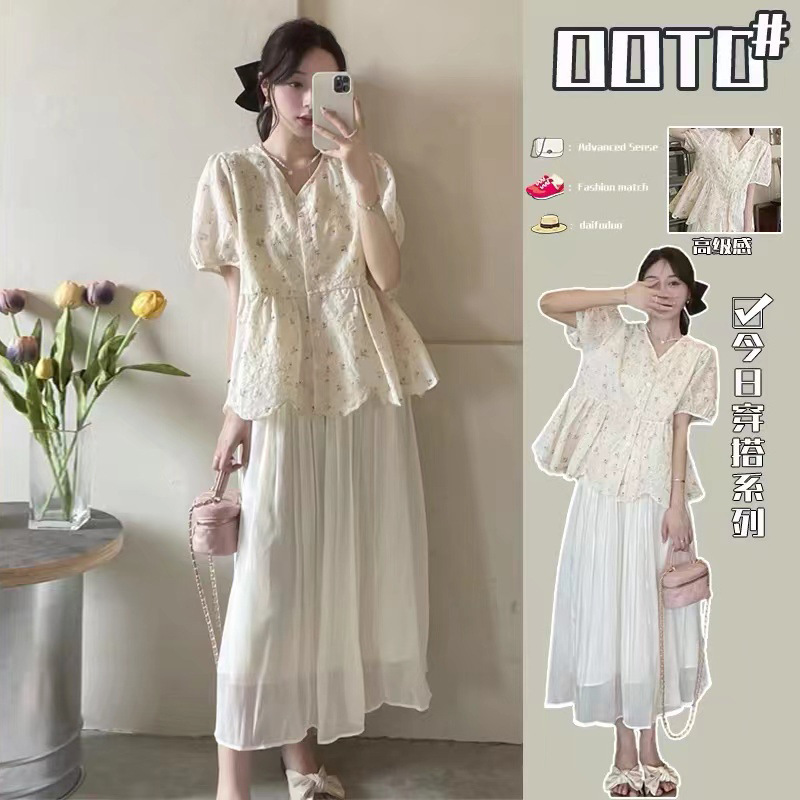 Летняя одежда для кормящих мам в наличии, рубашка с v-образным вырезом и цветочным дизайном, одежда для кормящих мам + повседневный костюм с юбкой в нежном стиле