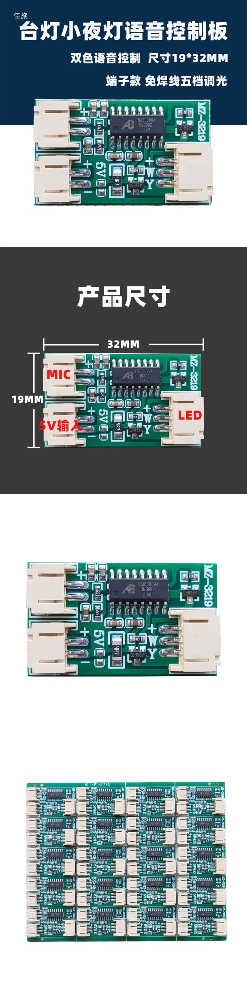 5 В плата управления голосом, затемнение, ночник, печатная плата, контроллер настольной лампы, светодиодная фоторамка, модуль света и тени