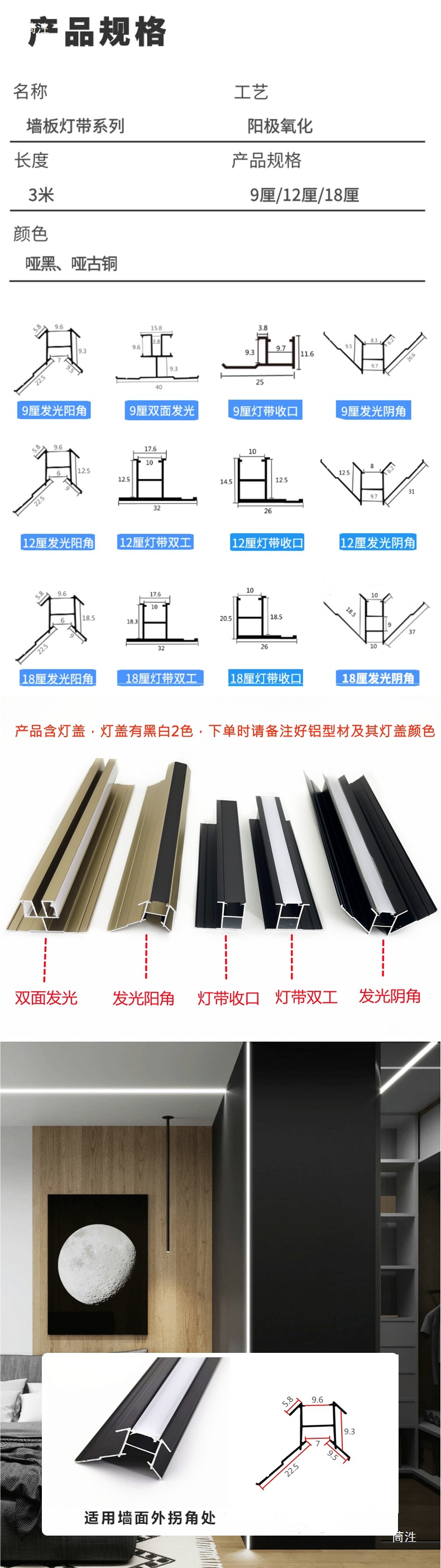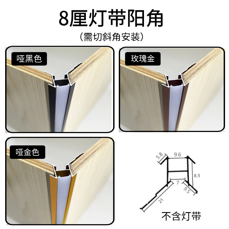 Световая полоса для угловой отделки стеновой панели из алюминиевого сплава с кромочной отделкой, световой канал из шпона без основного света, встраиваемая угловая линейная световая отделочная планка.