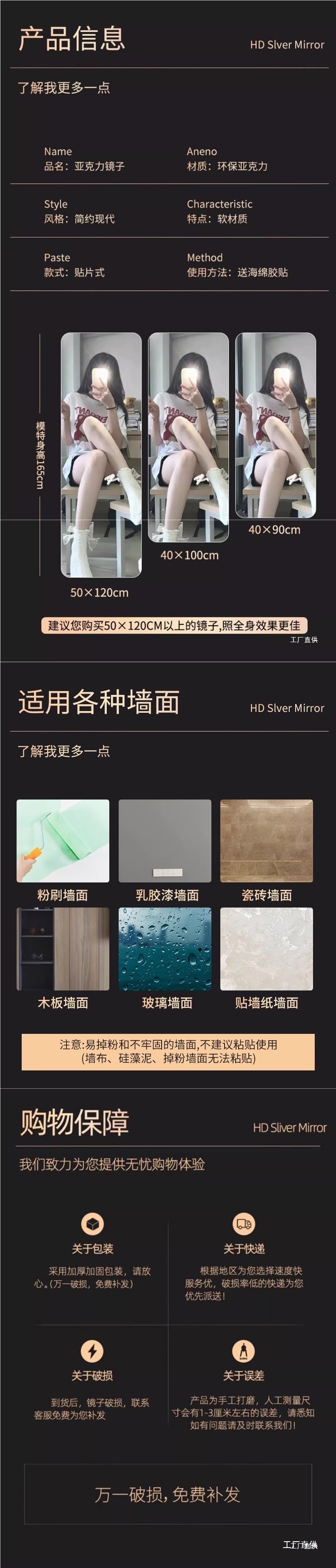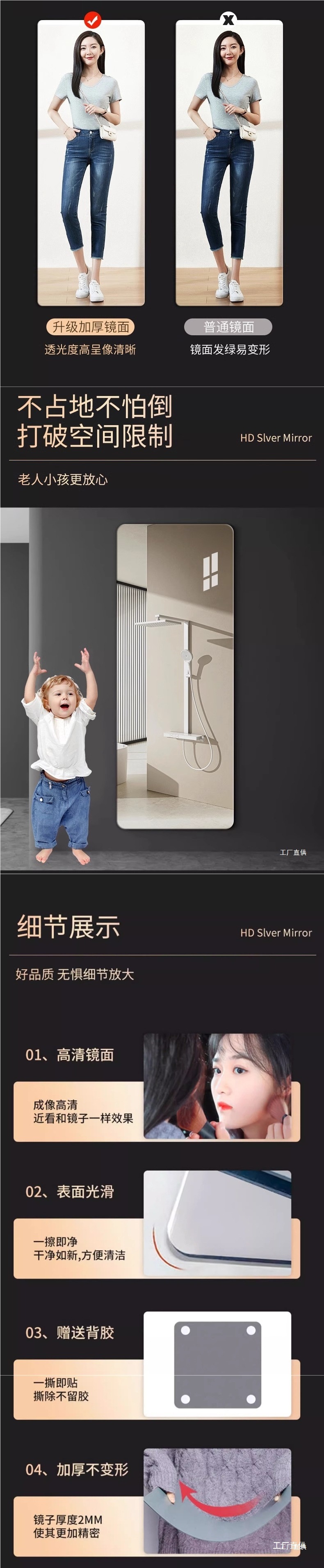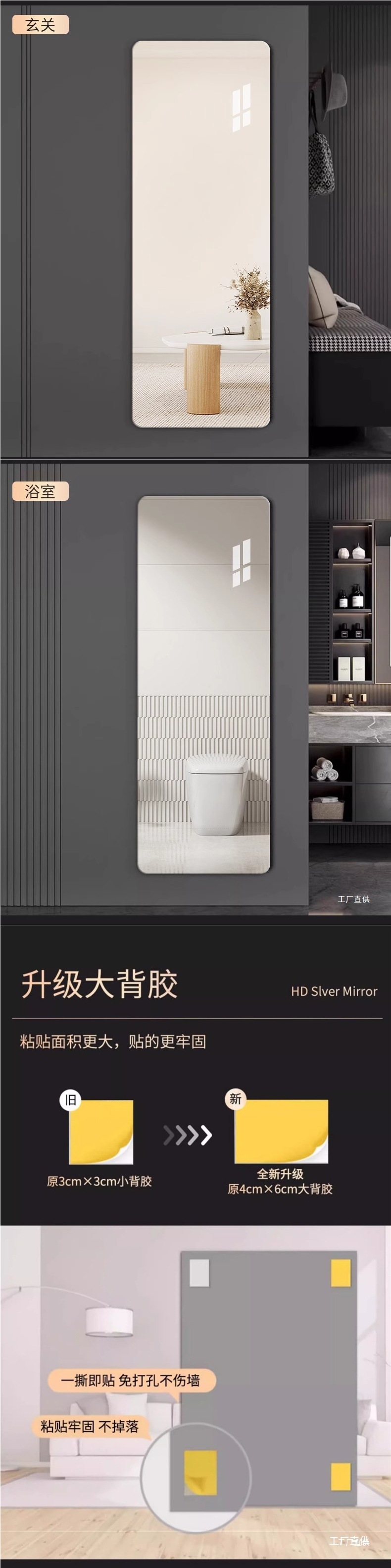 Японское импортное мягкое зеркало, настенное самоклеющееся зеркало для одевания всего тела, акриловое зеркало высокой четкости, можно прикрепить к дверям шкафа, дикий стиль