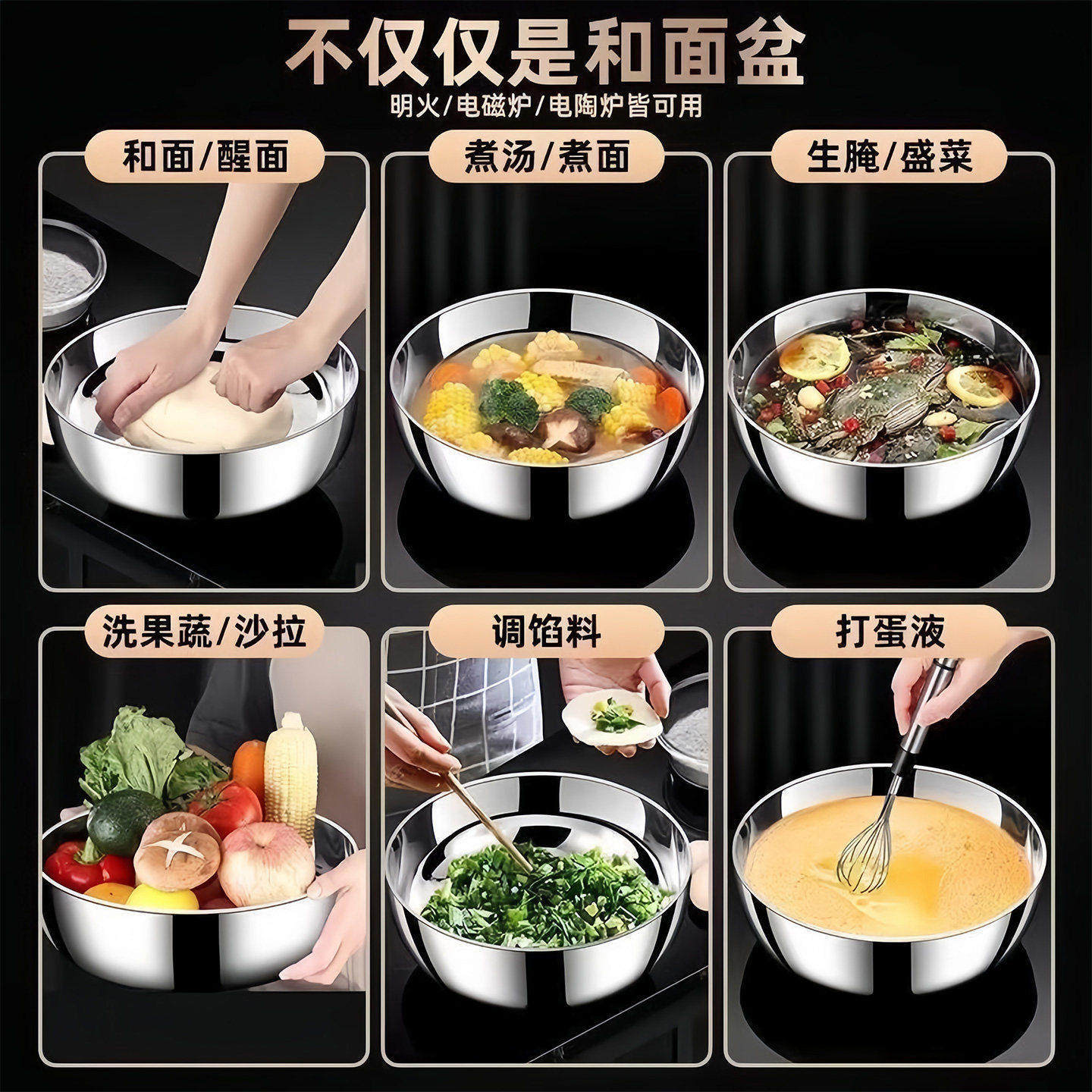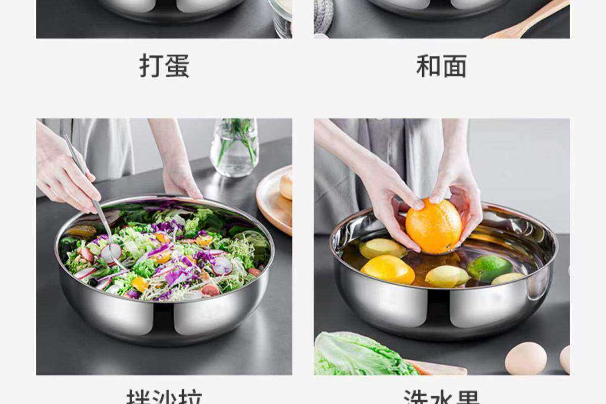 Используйте тазы из нержавеющей стали для различных целей [подача супа/мытье овощей/прием пищи/замес теста].