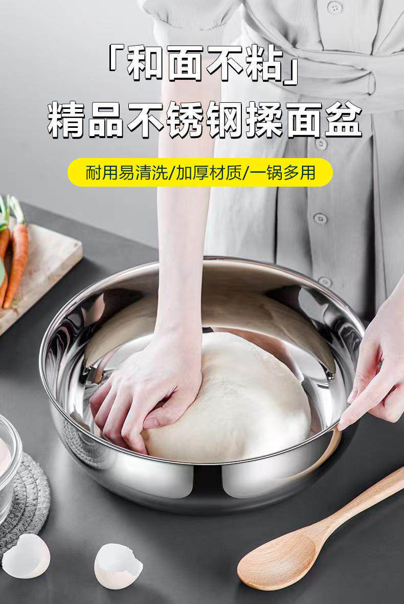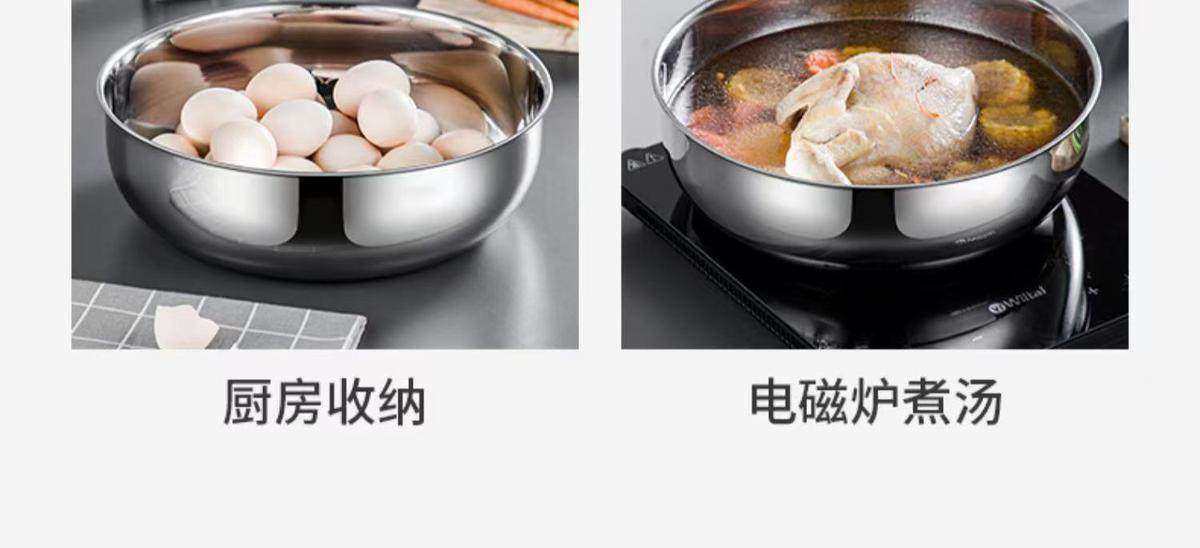 Миска для смешивания из нержавеющей стали, утолщенная кухонная мойка для дома, утолщенная кастрюля для супа, емкость для горячих блюд, таз для мытья овощей, таз для вареной рыбы.