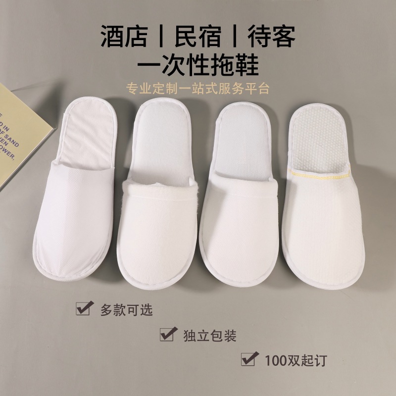 Всесезонные одноразовые тапочки для гостиниц B&B, нескользящие тапочки из нетканого материала на толстой подошве с плюшевым носком и половиной носка