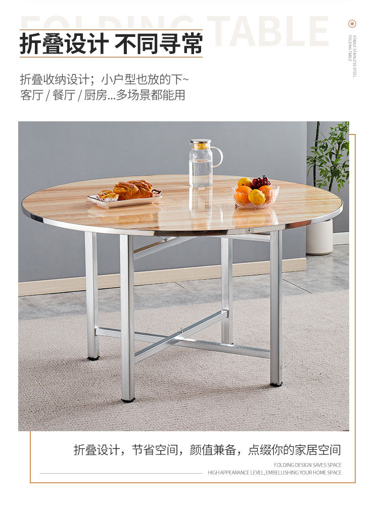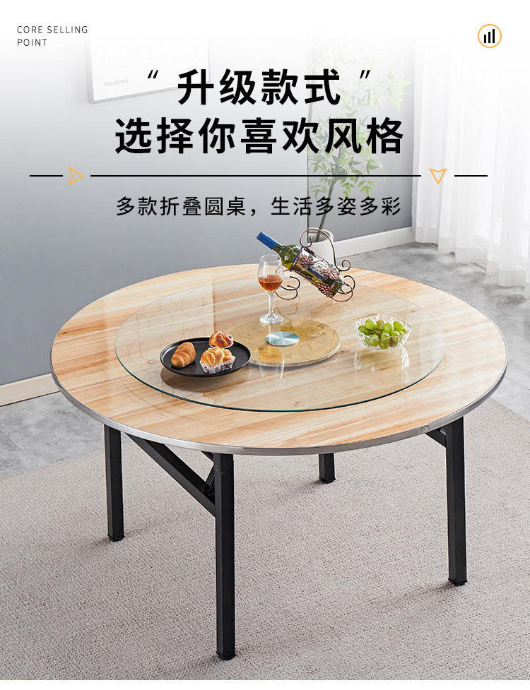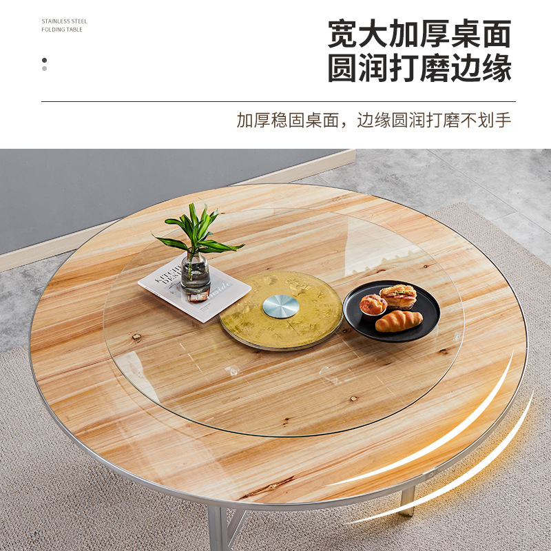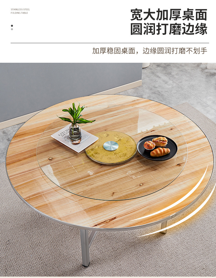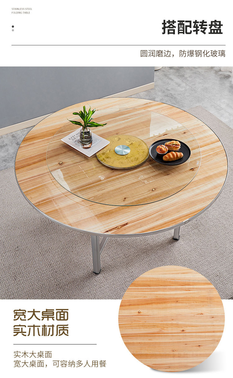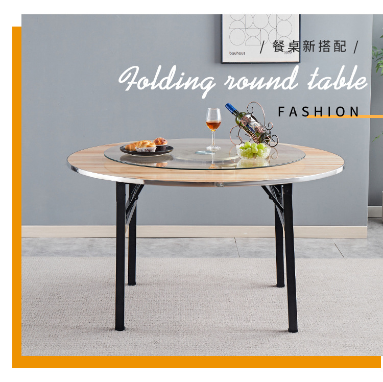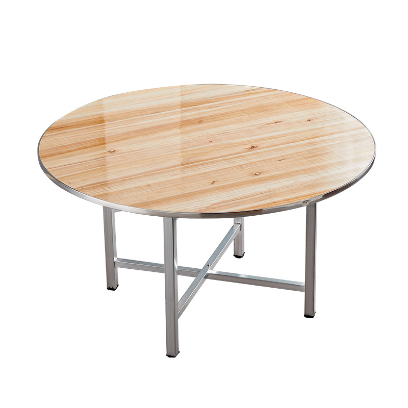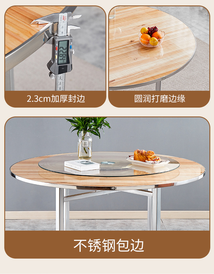 Круглый обеденный стол со стальным краем, вращающийся обеденный стол для отеля, поворотный стол, банкетный простой круглый ресторанный стол из цельного дерева