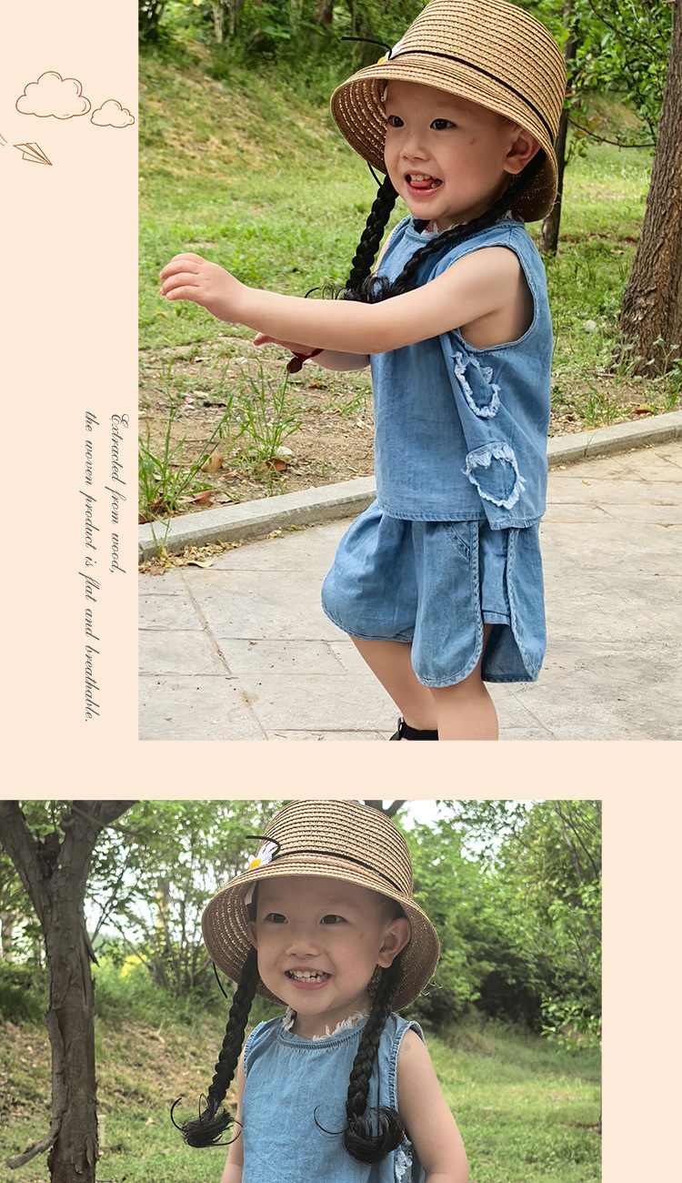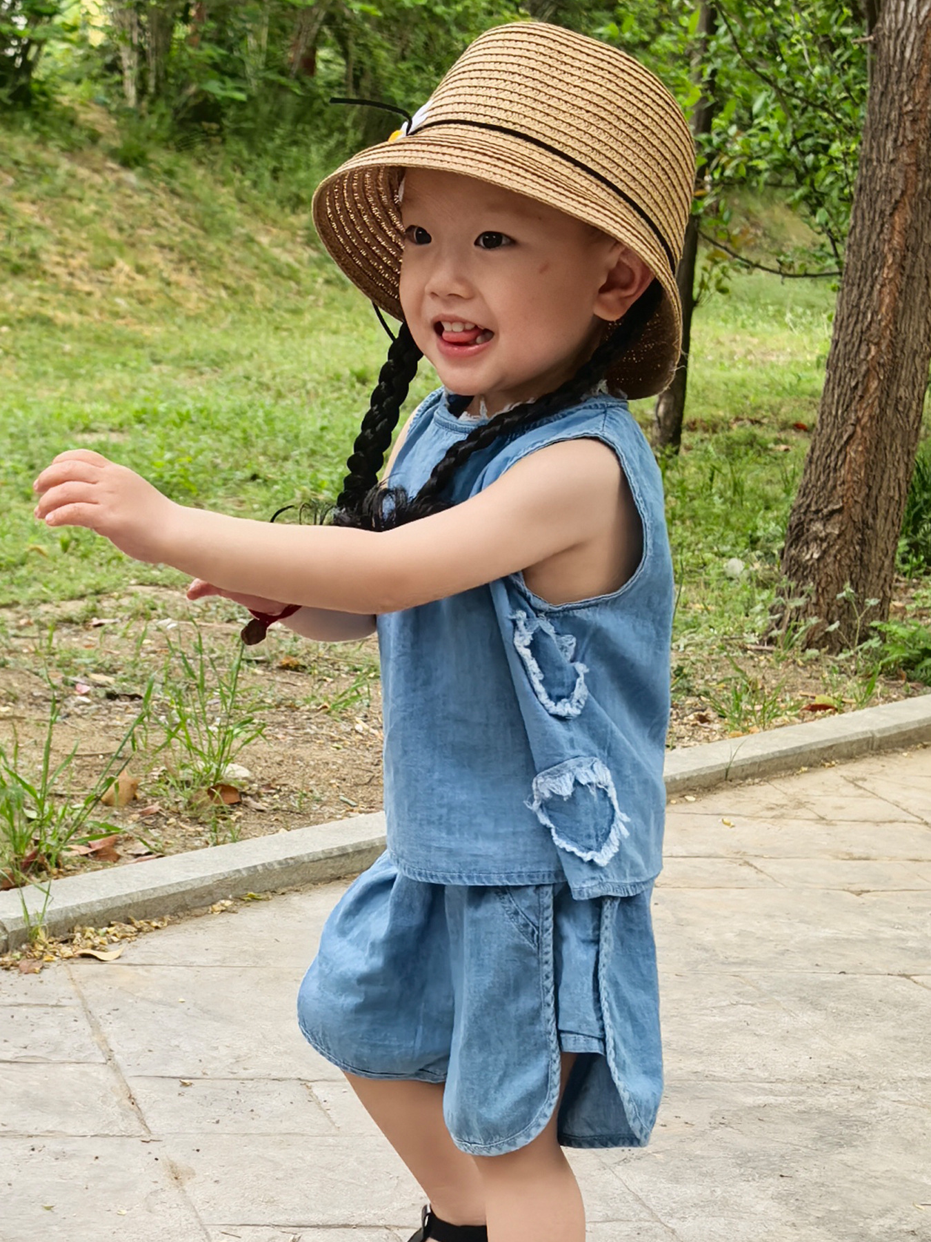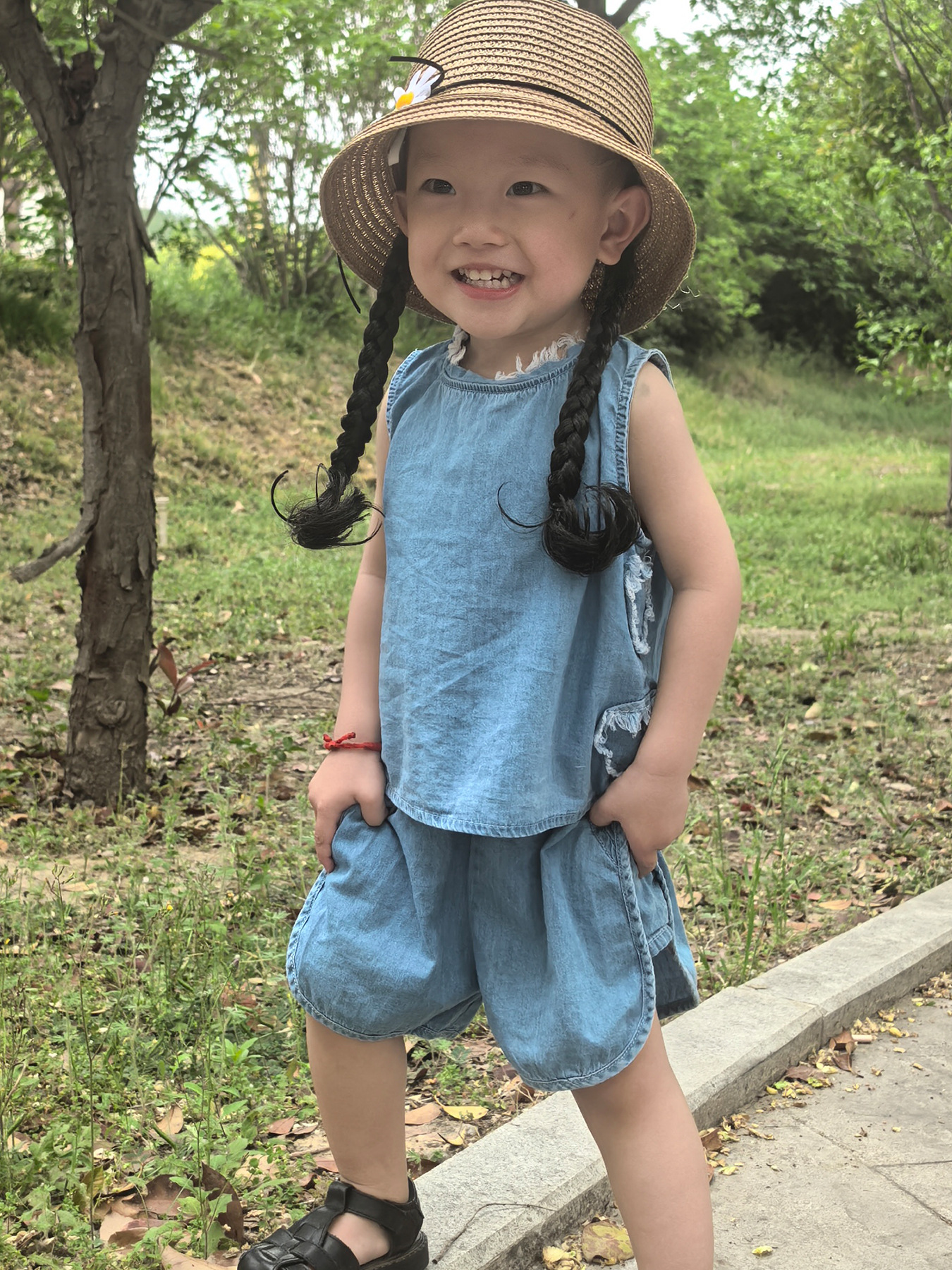 Летний стильный комплект из искусственного денима для девочек 2025, новый корейский стиль, тонкие шорты, двухкомпонентный набор для малышек