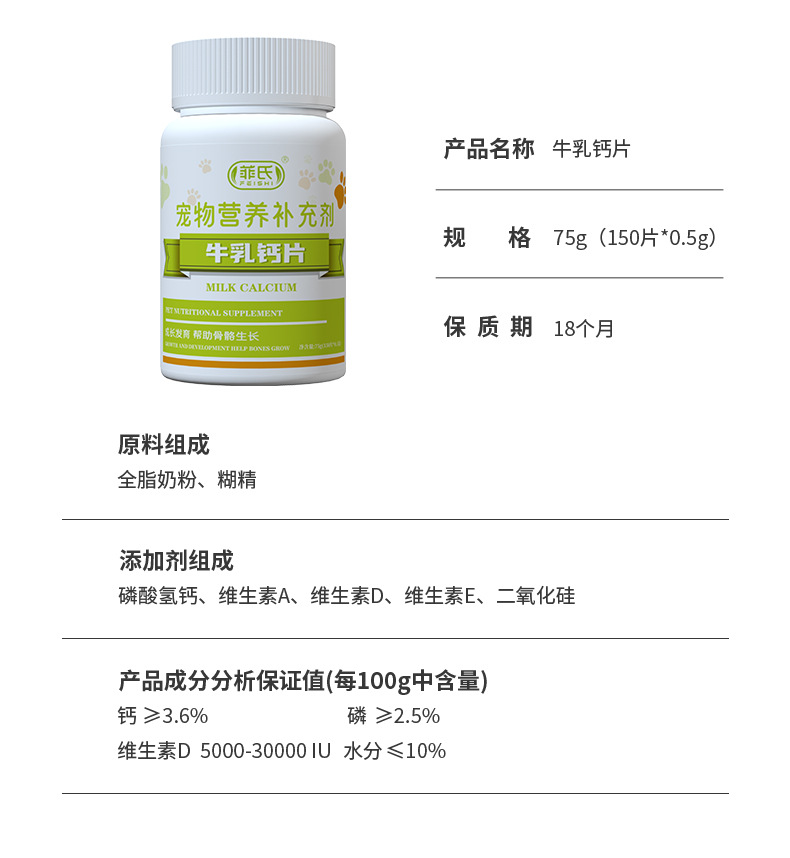 Таблетки кальция для домашних животных Fei's 75 г (150 таблеток*0,5 г)