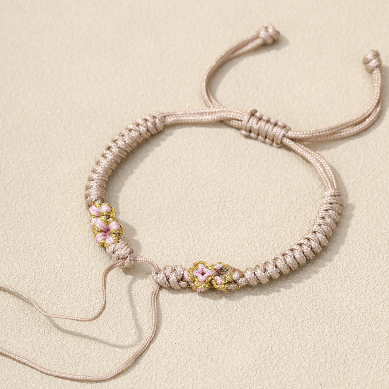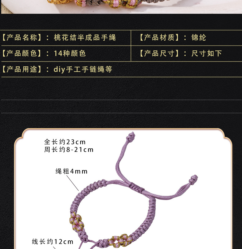 Полуфабрикат браслета с узлом «Цветок персика» можно использовать для нанизывания бусин, изготовления бирок для сумок, украшений, полуфабрикатов браслетов, плетеных веревок, украшений на год рождения.