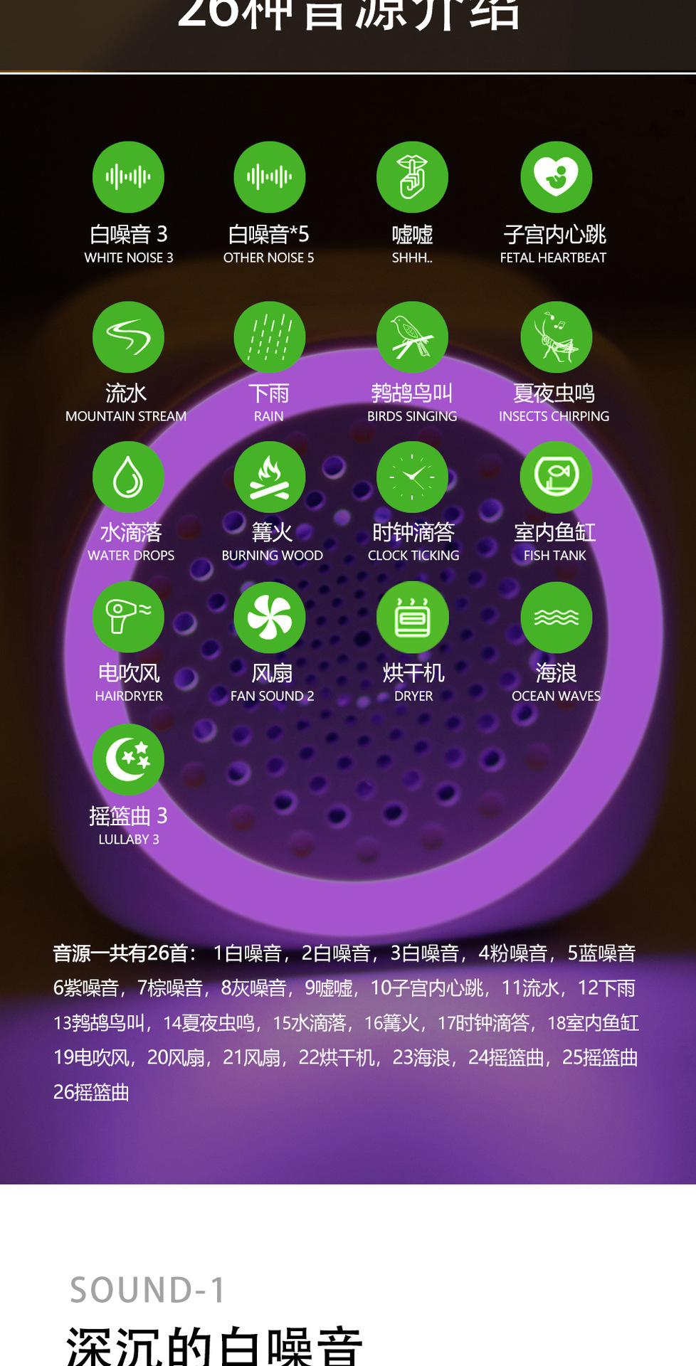Новый белый шумоустройство сна с лампой сна 26 музыкальных часов