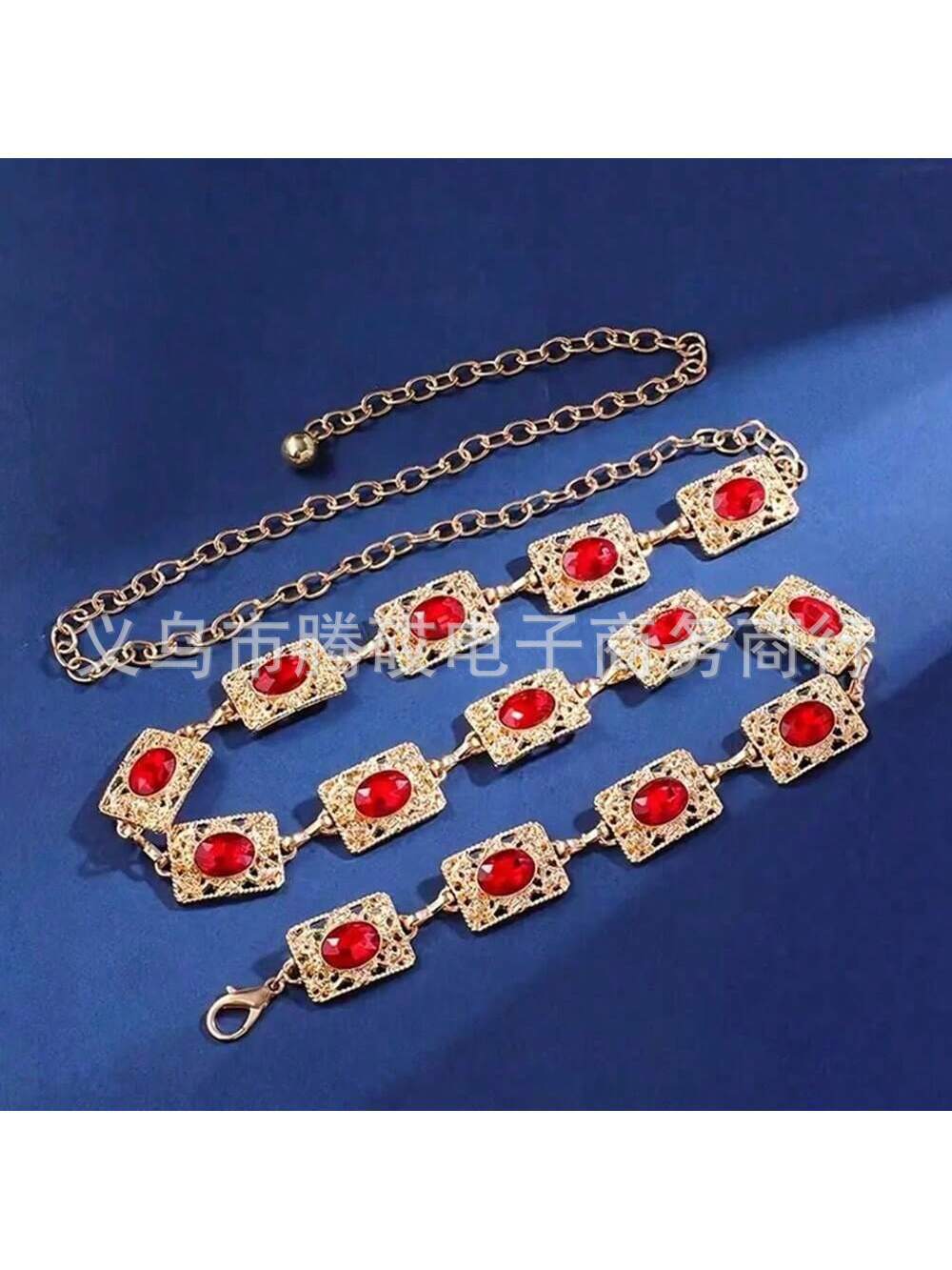 Женский ремень с зеркальной поверхностью, повседневная декоративная поясная цепочка, поясная цепочка с агатовым кристаллом, металлическая цепочка с рубинами, женский ремень в наличии