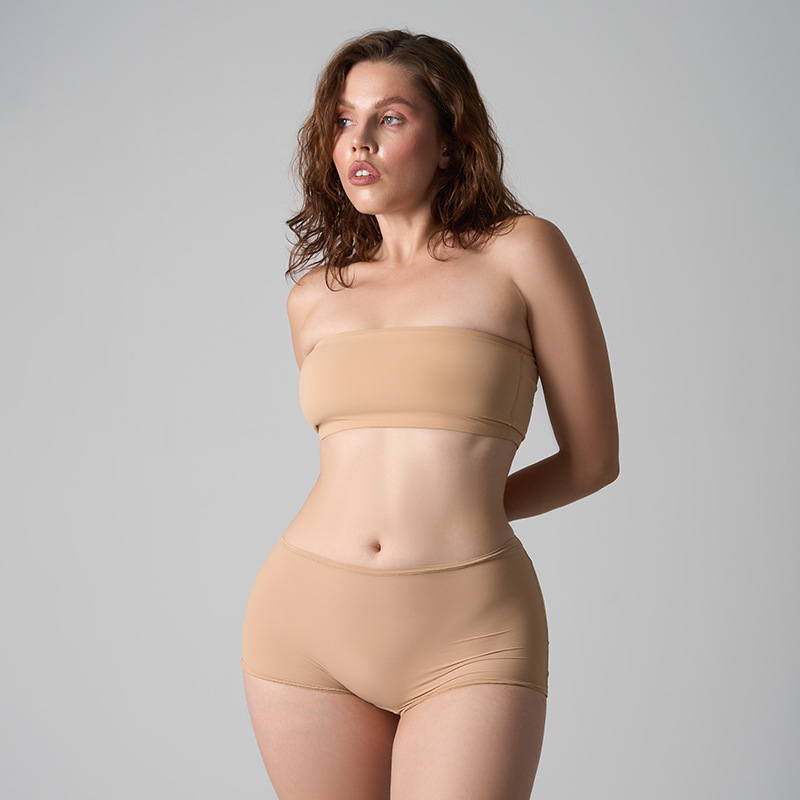 SKIMS комплект нижнего белья в одном стиле, двухслойный нейлоновый бесшовный костюм телесного цвета без бретелек