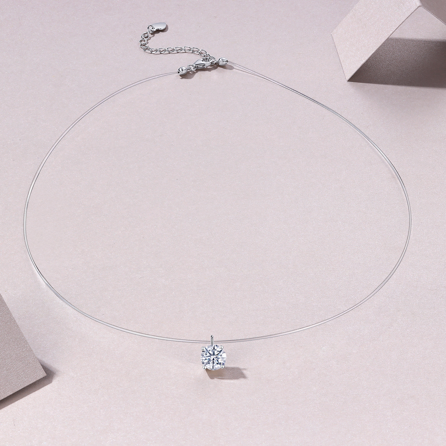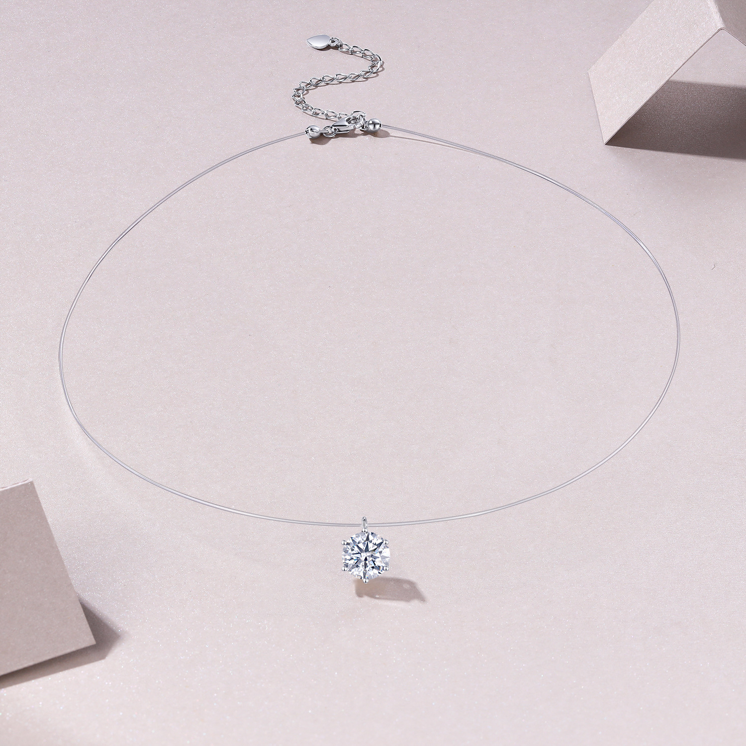 Douyin Moissanite 18K Белый Золотой Невидимая Леска Кулон В форме Капли Воды Цепочка На Ключицу Повседневное Ожерелье «Русалка Слезы» для Женщин