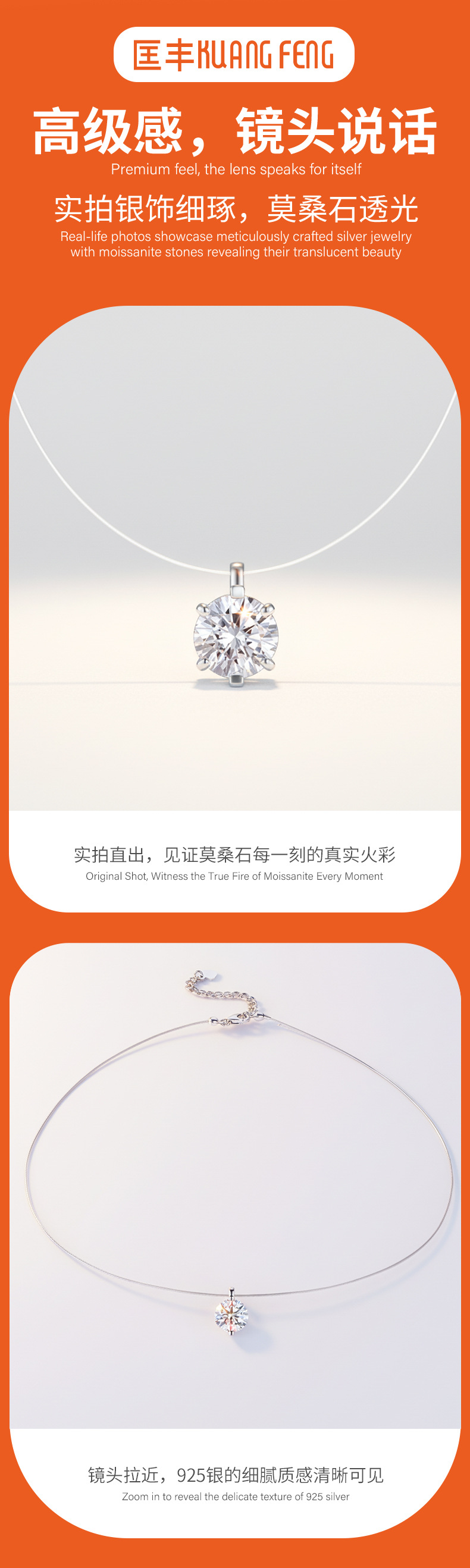 Douyin Live Moissanite кисточка невидимая леска кулон в форме капли воды цепочка на ключицу повседневное ожерелье с сиянием слез русалки для женщин