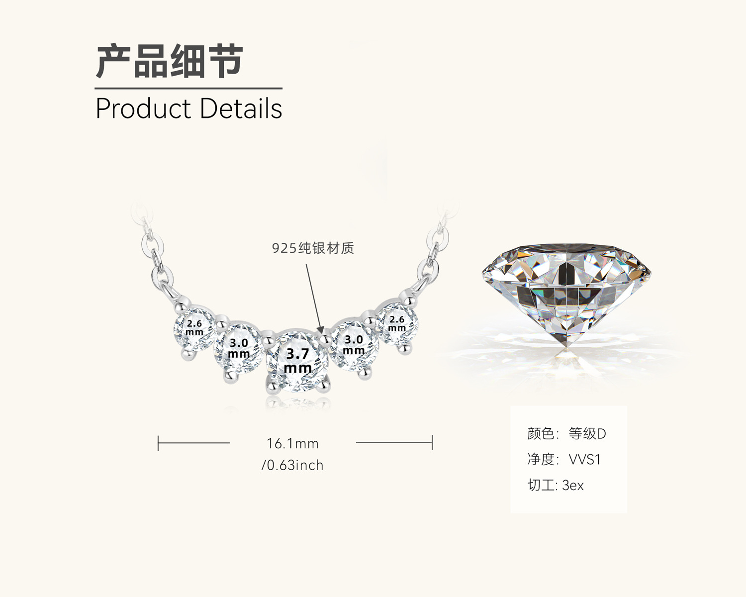 | 本厂莫桑钻饰品 均可通过测钻笔 配送GRA证书黑卡 支持复检 国标S925银电镀厚金 |