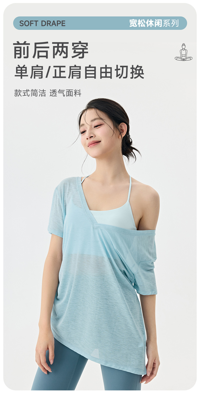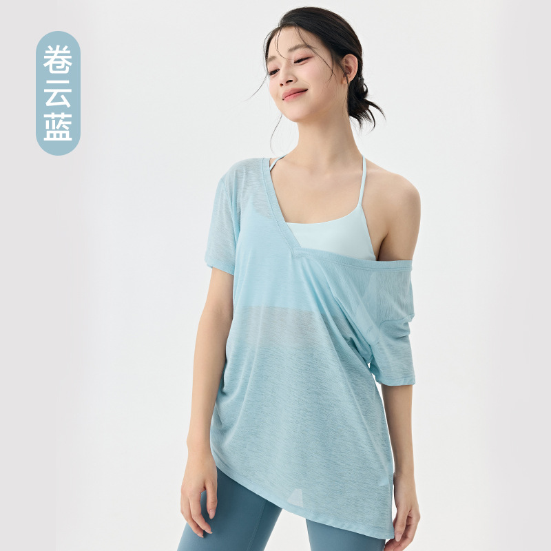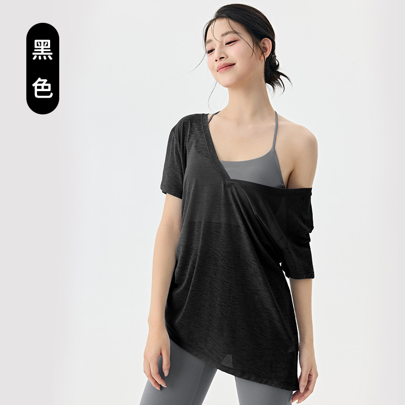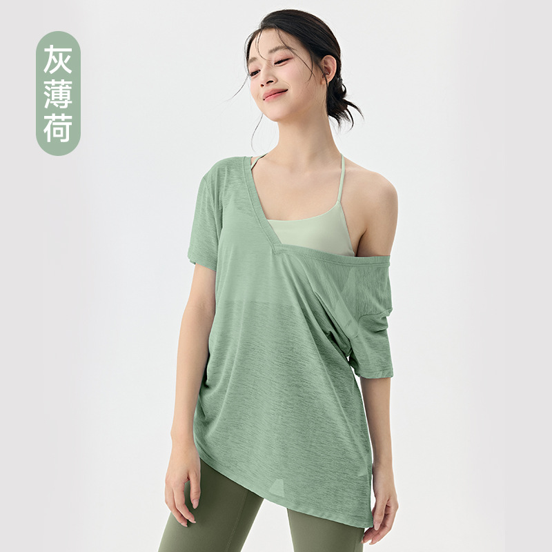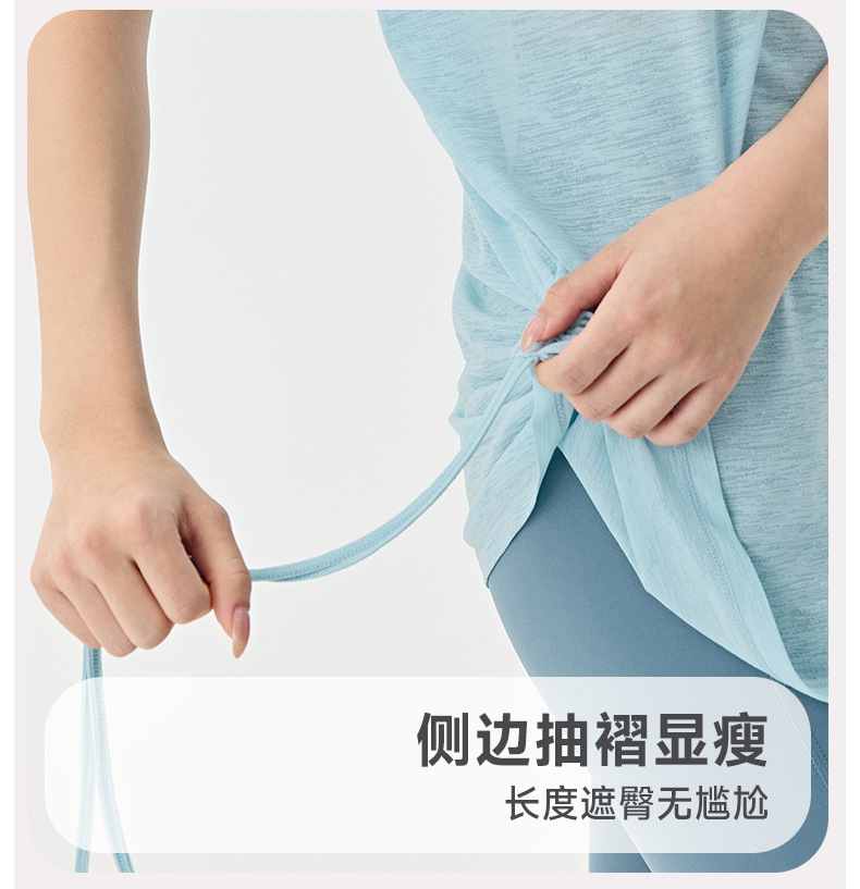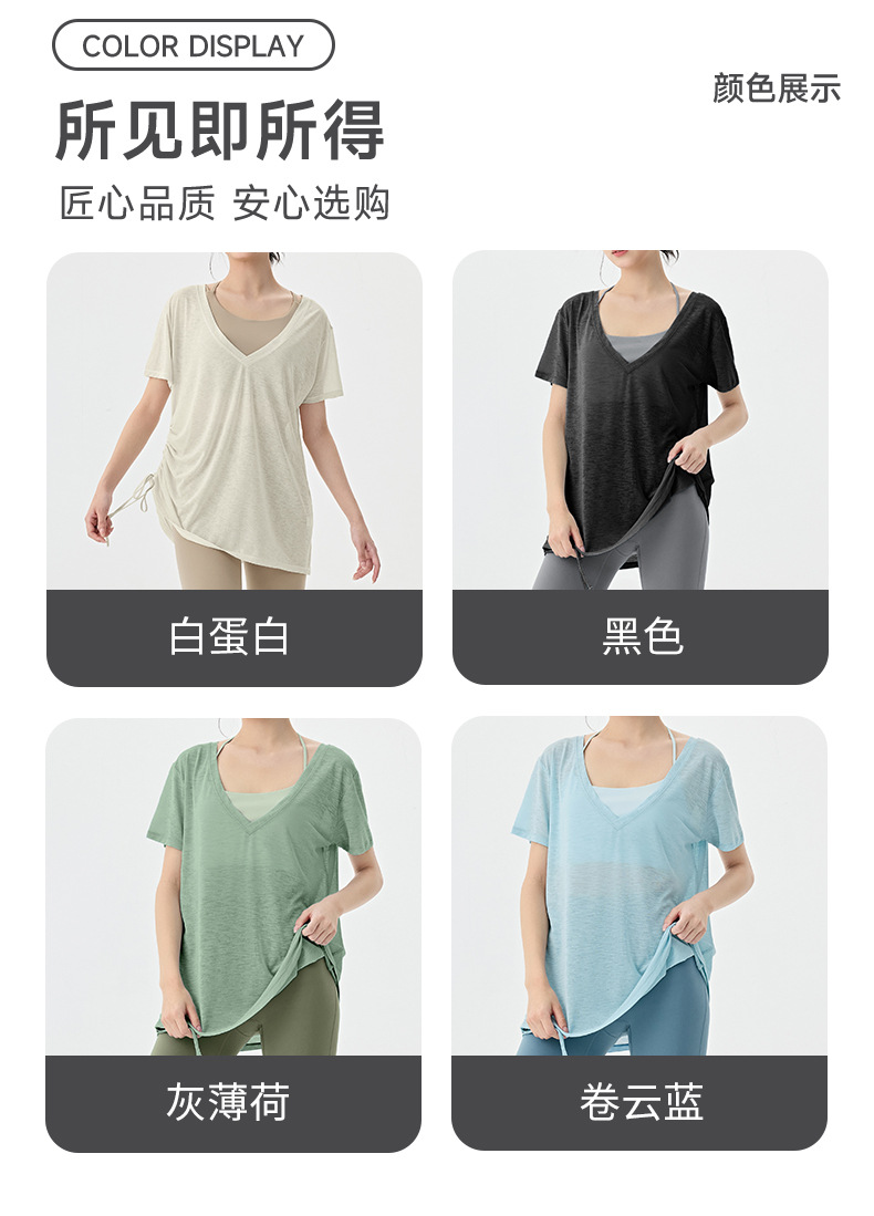 Летняя спортивная блузка с присборенной боковой частью для женщин, закрывающая ягодицы, свободная повседневная футболка для йоги, большой вырез, тонкая одежда для фитнеса.