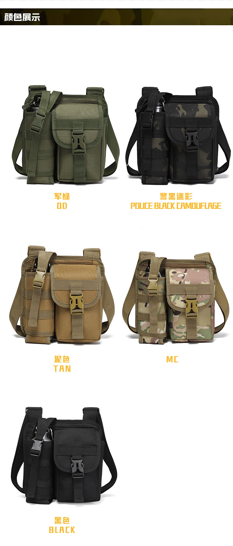 Небольшая сумка через плечо на одно плечо для улицы с несколькими карманами для хранения, тактическая спортивная сумка, сумка для хранения инструментов через плечо, модная брендовая сумка для бутылки с водой.