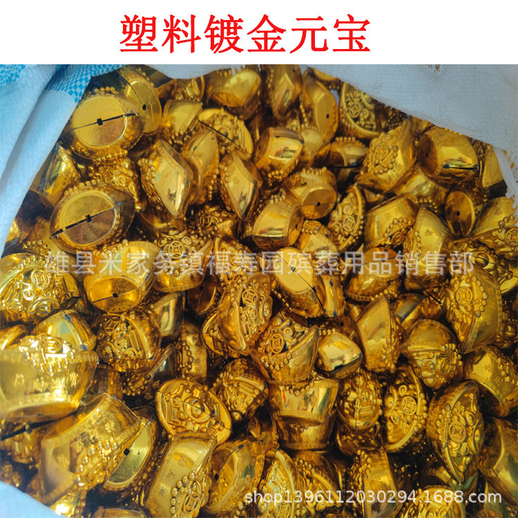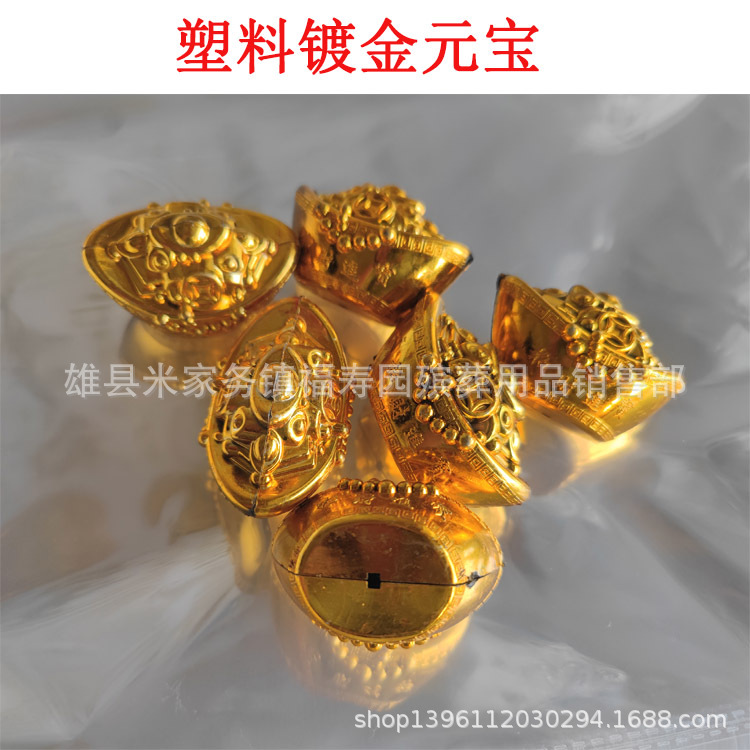 本产品为塑料镀金元宝,1件3000个,价格就是1个的价格,最少3000个起批,咨询客服