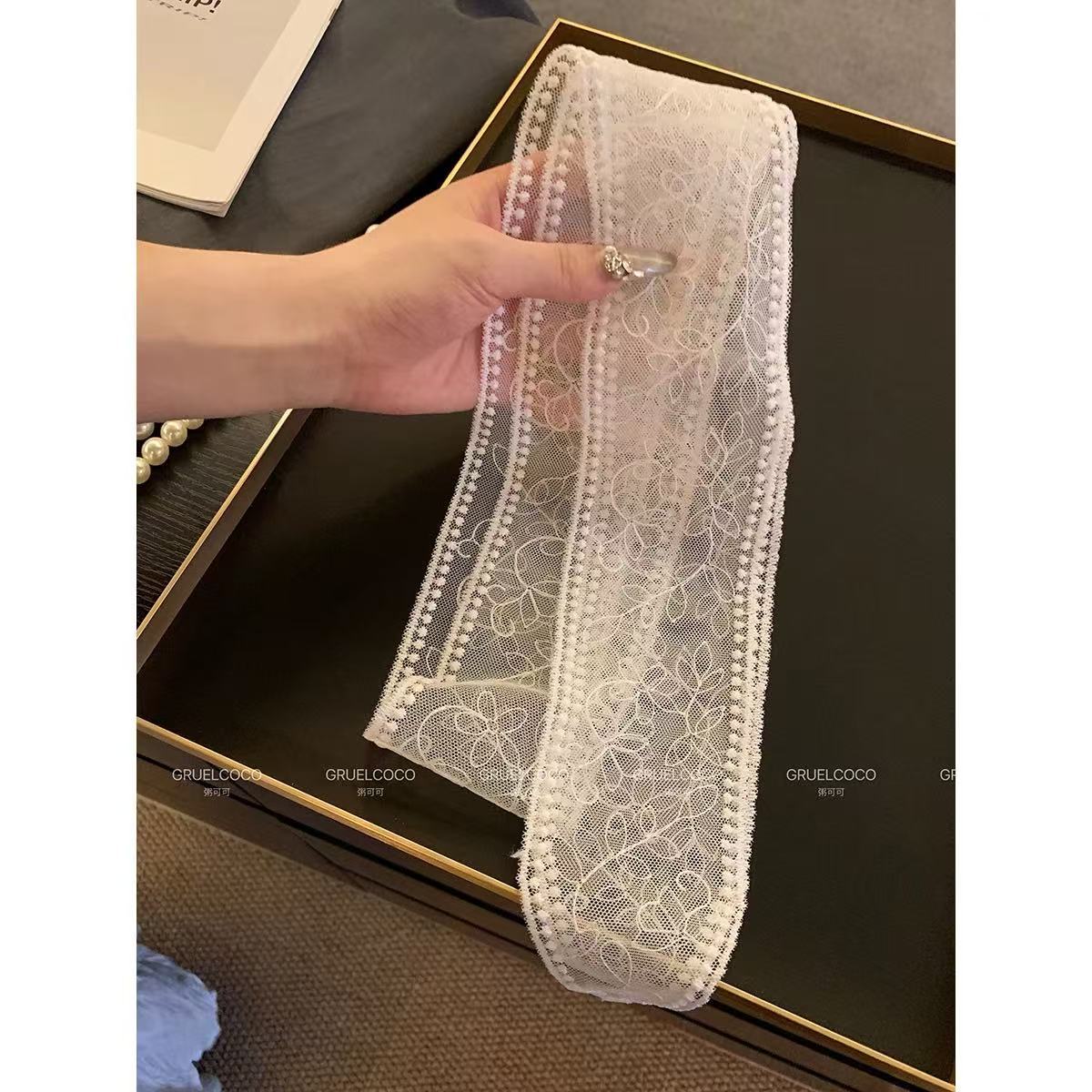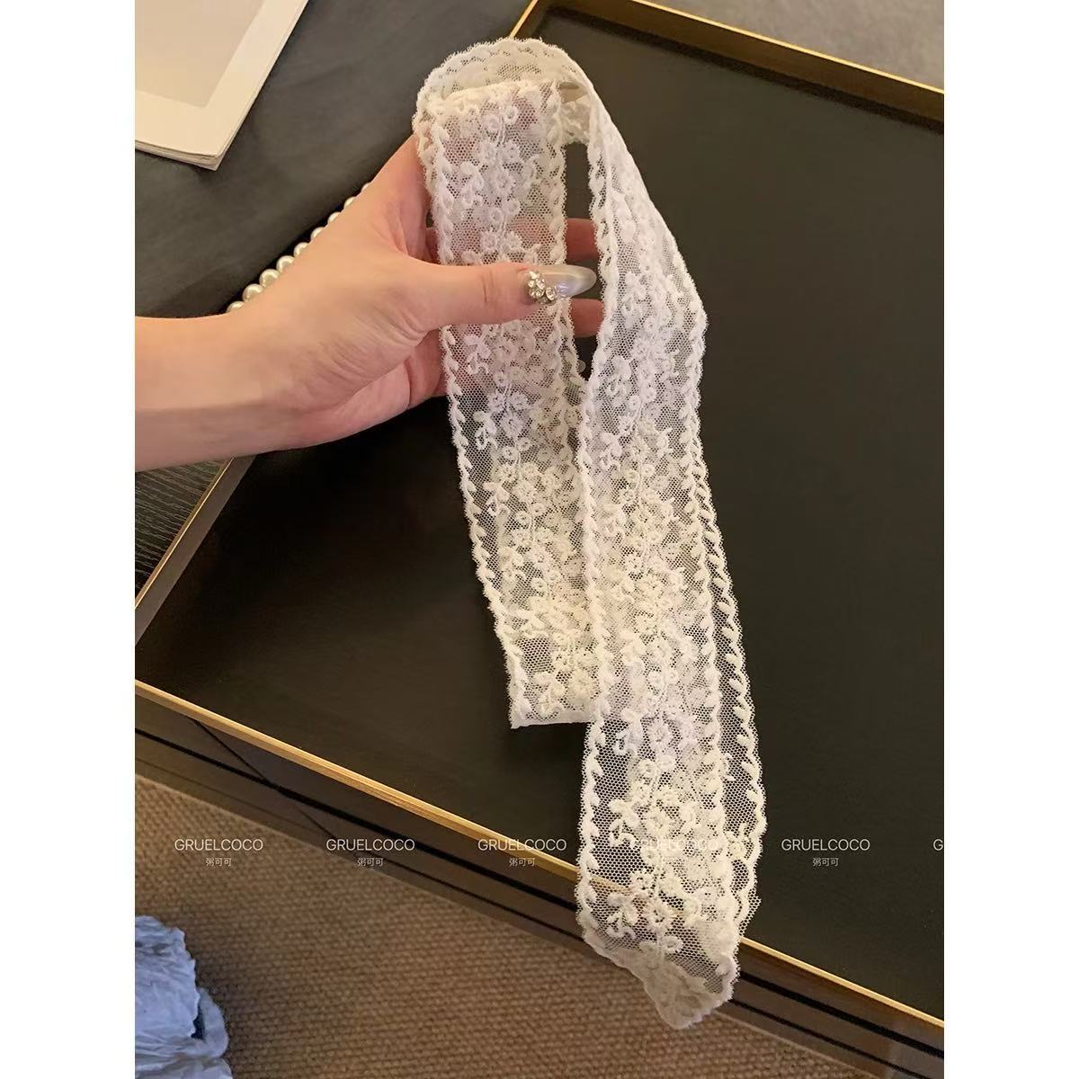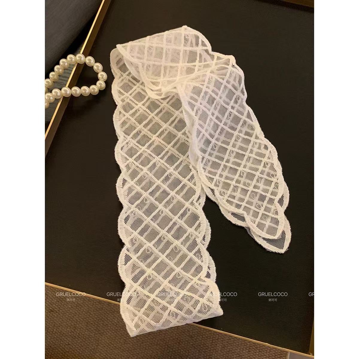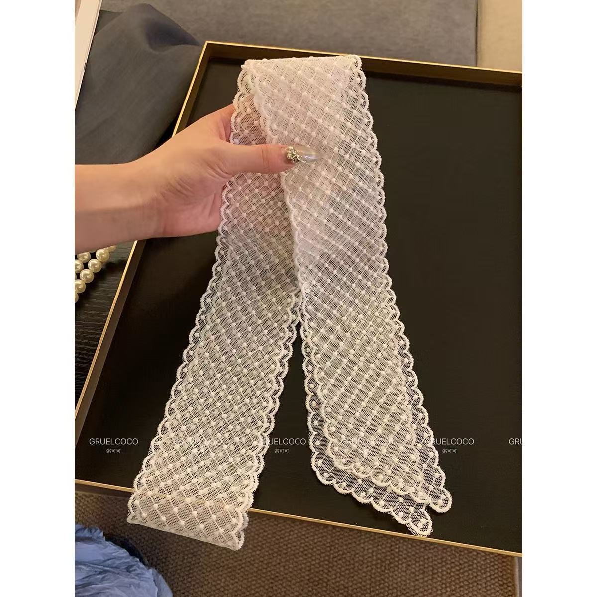 Корейская версия, белая кружевная лента, женский весенний элитный элегантный длинный шелковый шарф, универсальный шарф, украшение на шею