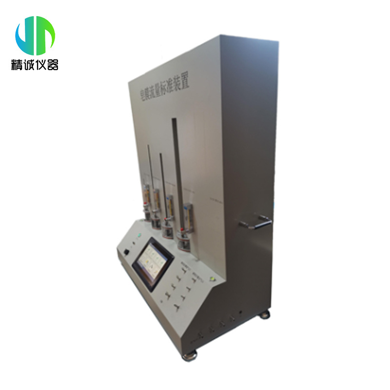 JH-ZM01型皂膜流量标准装置主要是根据JJG 586-2006 <<皂膜流量计检定规程>>设计而成,主要用于各种类型气体皂膜流量计的校准及检定,流量标准装置采用10.1寸大屏幕彩色电容触摸屏,中文图标显示,造型美观大体,易于操作。采用同步脉宽调制红外检测技术检测皂膜,不受外界光线干扰,采用32位处理器测量环境温度、大气压、被检仪器计前温度、被检仪器计前压力、标准皂膜管计前温度、标准皂膜管计前压力、自动计算标准皂膜管的工况流量、标况流量、被检仪器状态的下的流量,不需人工计数,检测速度快,重复性好,测量精度高,有效减少工时和消除人为误差。