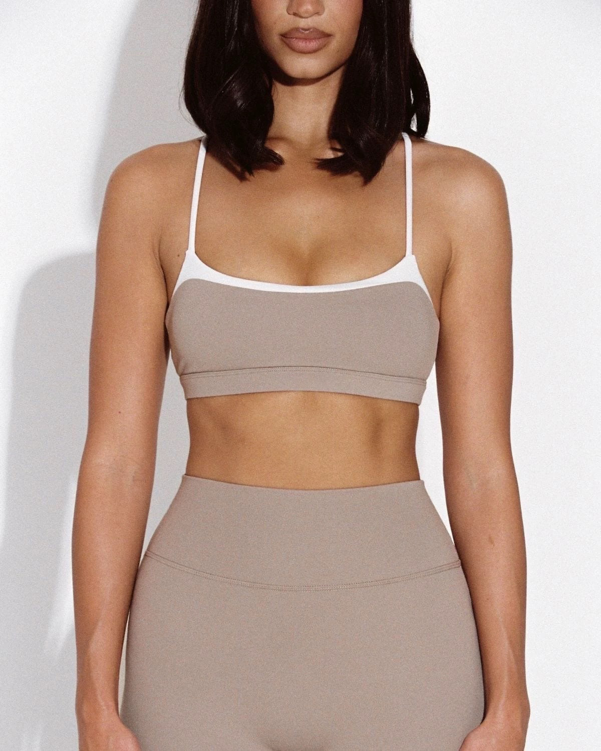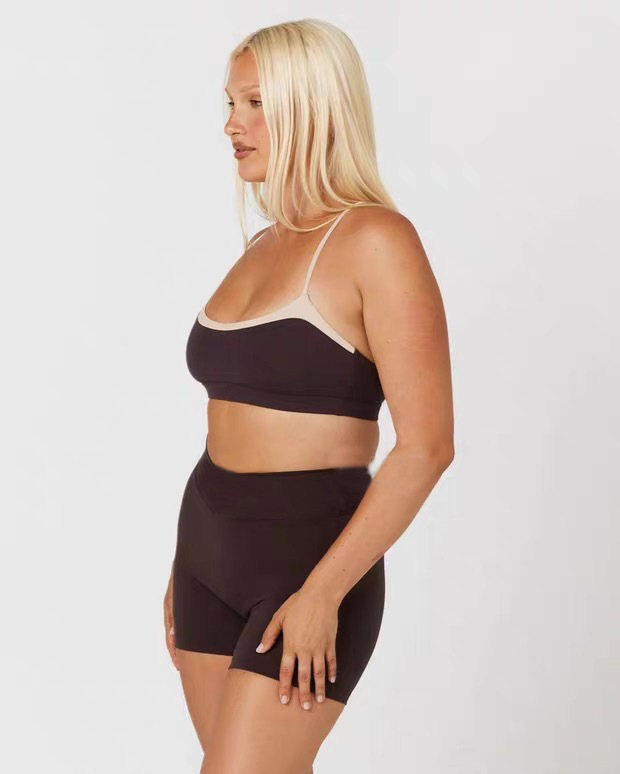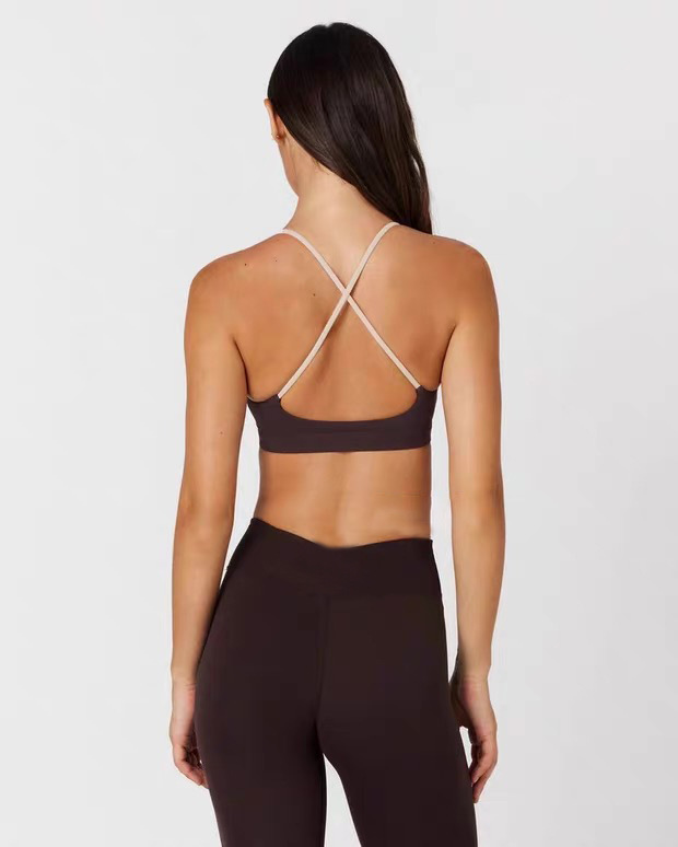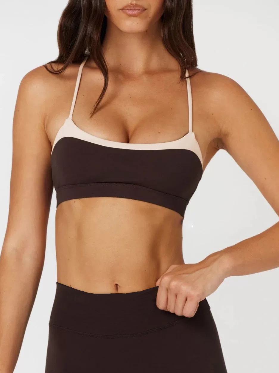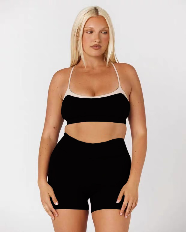 Топы с цветными блоками для внешней торговли и подушечками для груди для женщин, быстросохнущие спортивные штаны для фитнеса и йоги с высокой талией, подтягивающие ягодицы, комплект из двух предметов