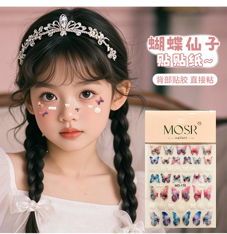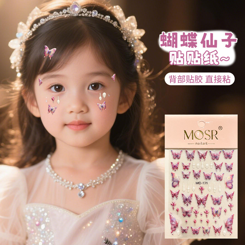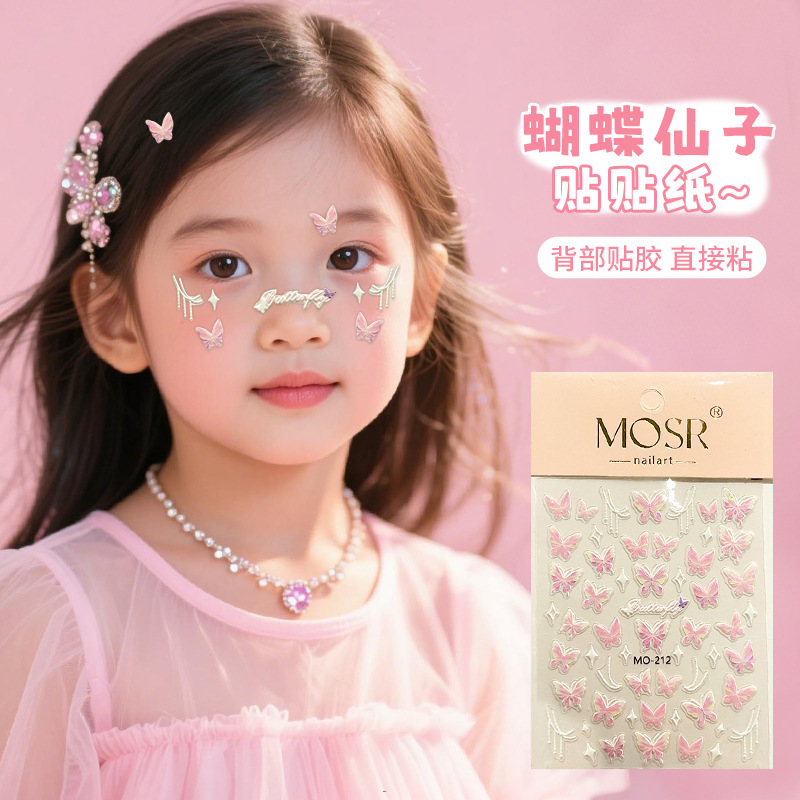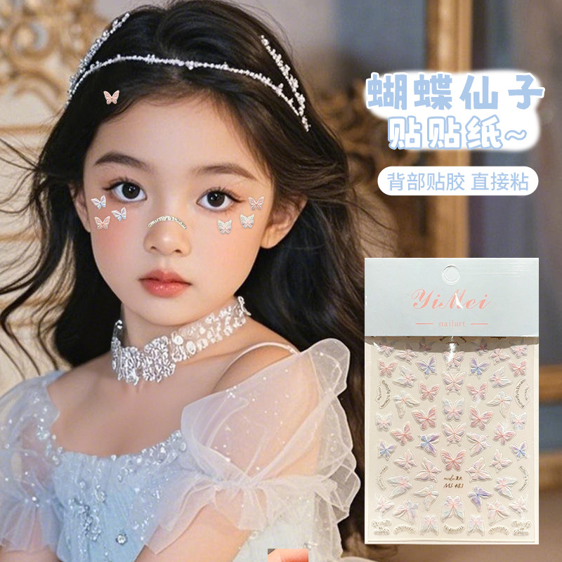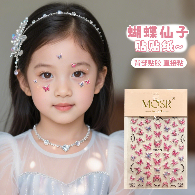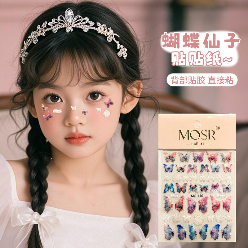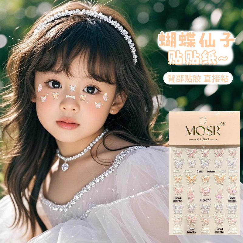 Детские украшения для макияжа лица, самоклеящиеся наклейки с бабочками, сценические бумажные наклейки, бумажные наклейки с бабочками и бриллиантами, украшения для концертного макияжа, наклейки