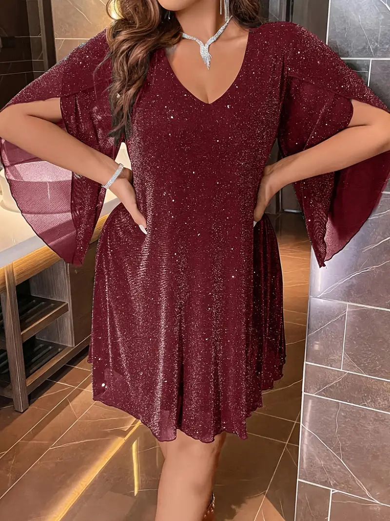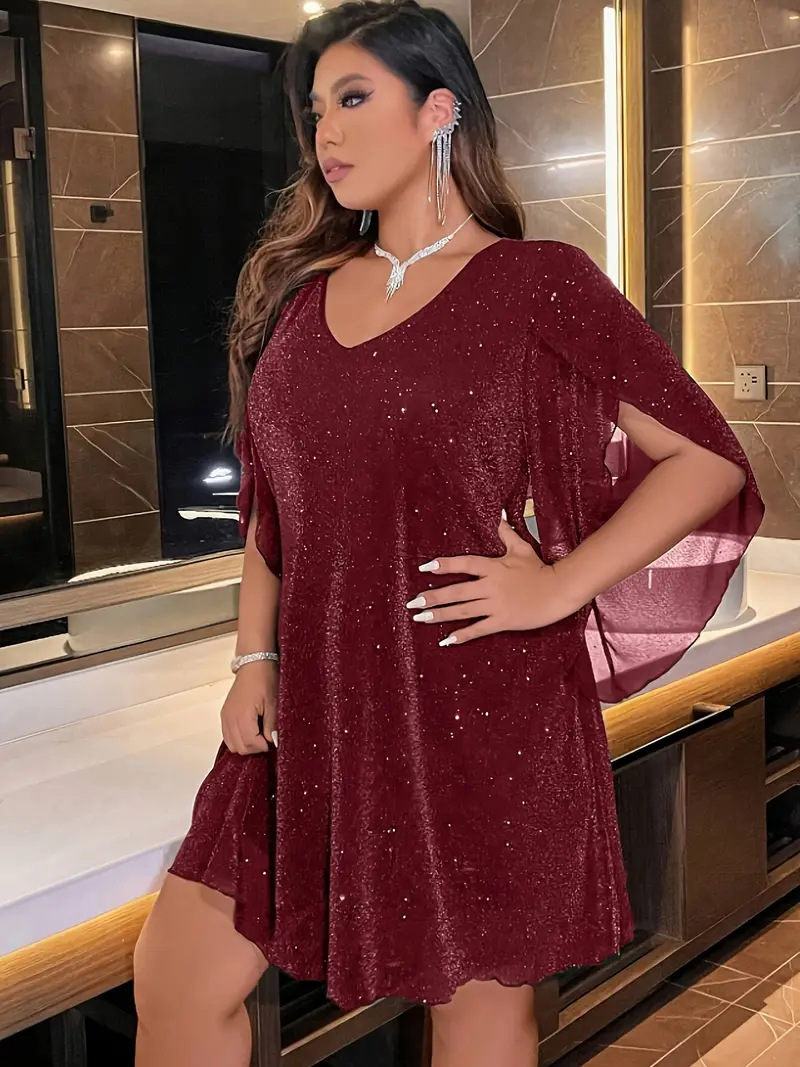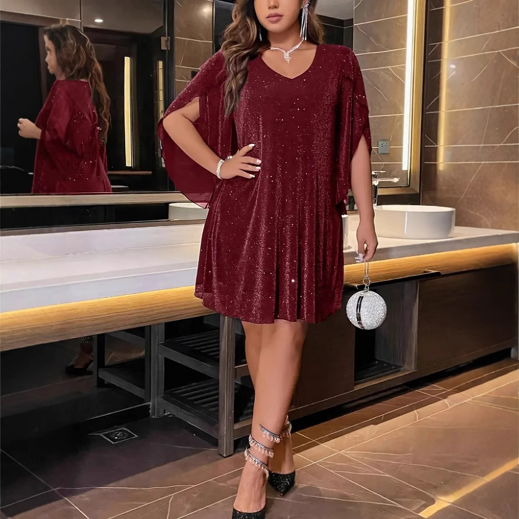 Элегантное женское платье Amazon для женщин больших размеров, весна-лето, с V-образным вырезом, рукавами с разрезом и поясом, для торжественных мероприятий, европейский и американский стиль