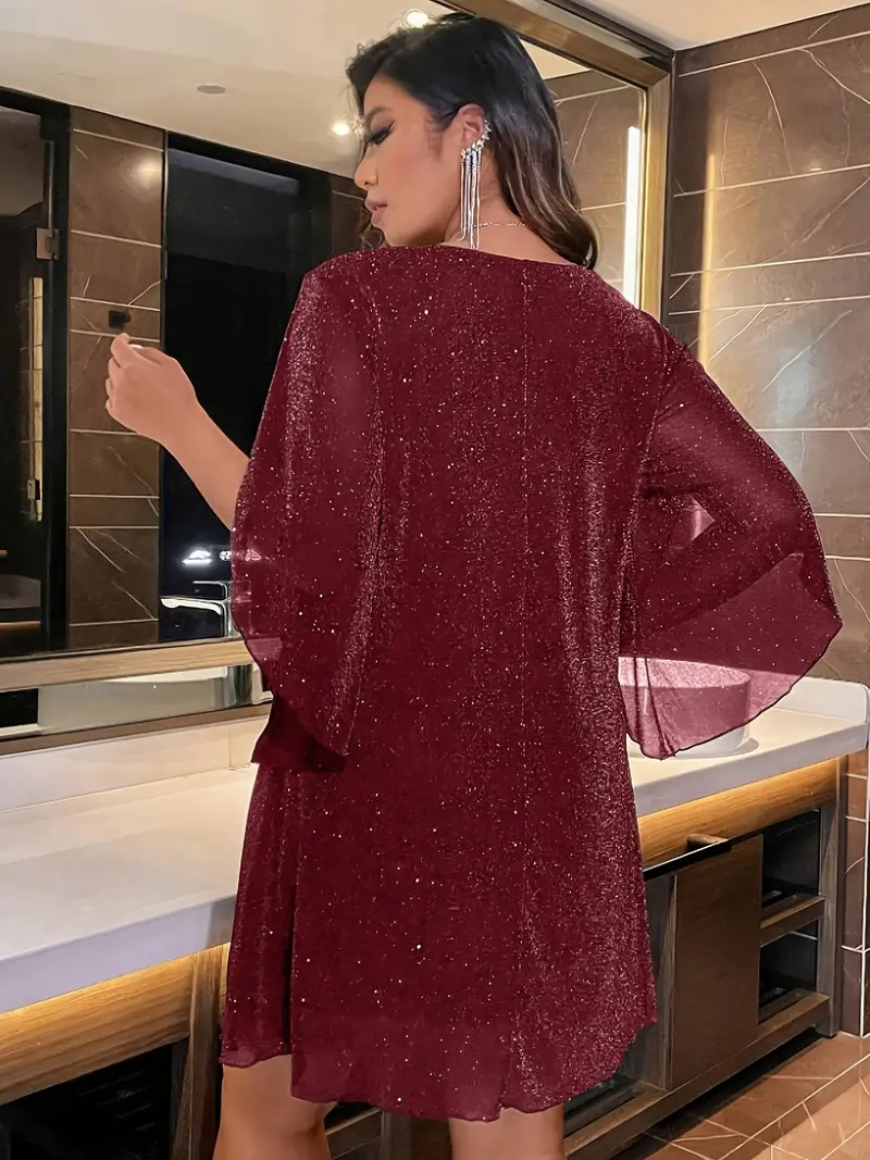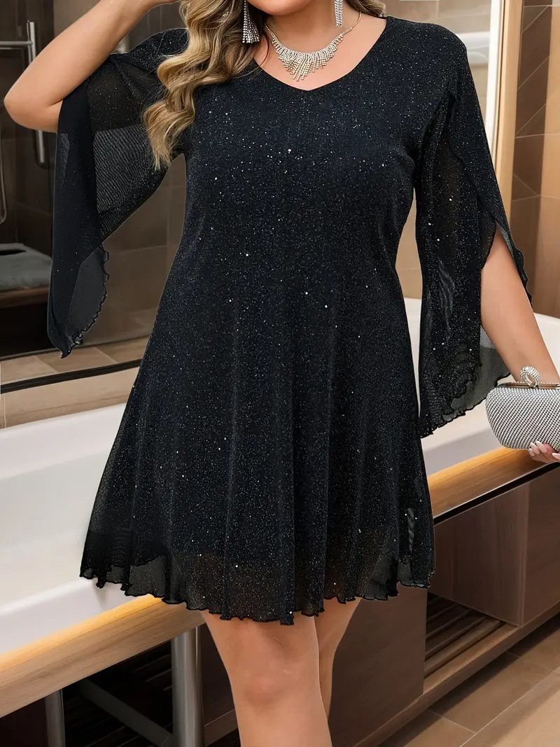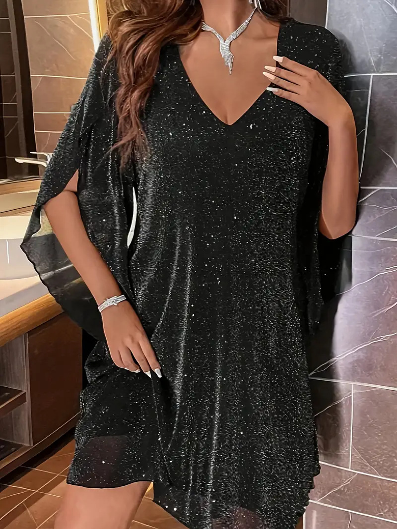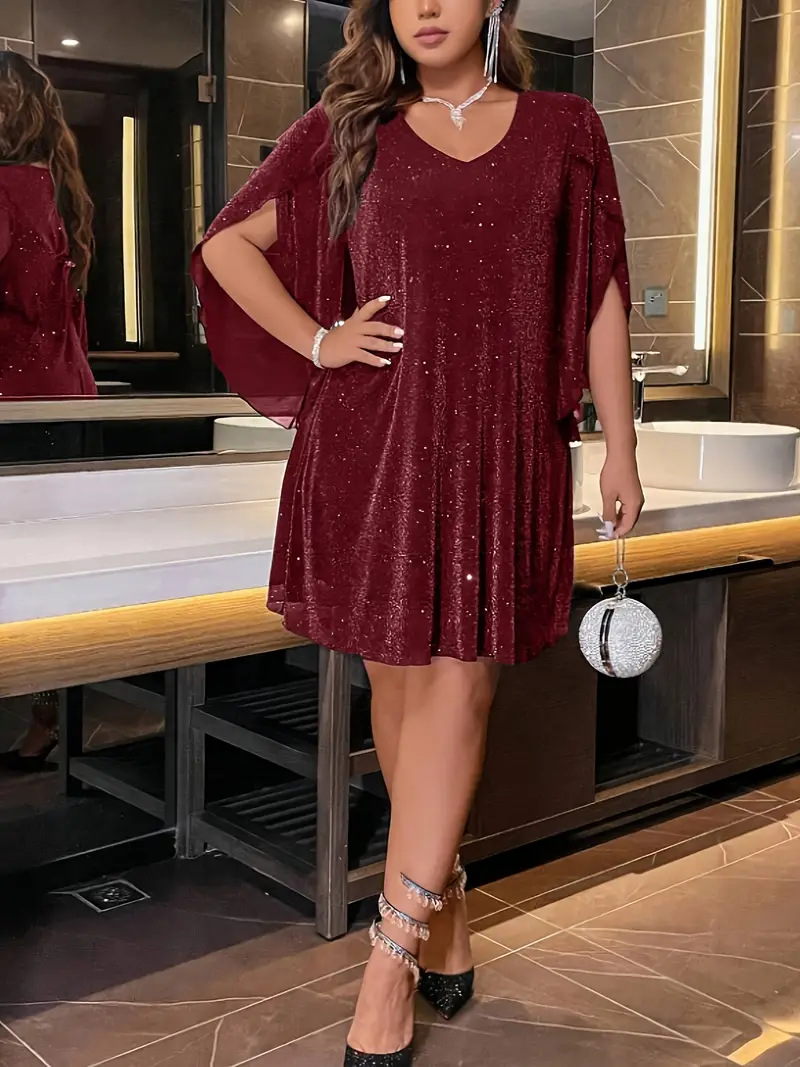 Элегантное женское платье Amazon для женщин больших размеров, весна-лето, с V-образным вырезом, рукавами с разрезом и поясом, для торжественных мероприятий, европейский и американский стиль