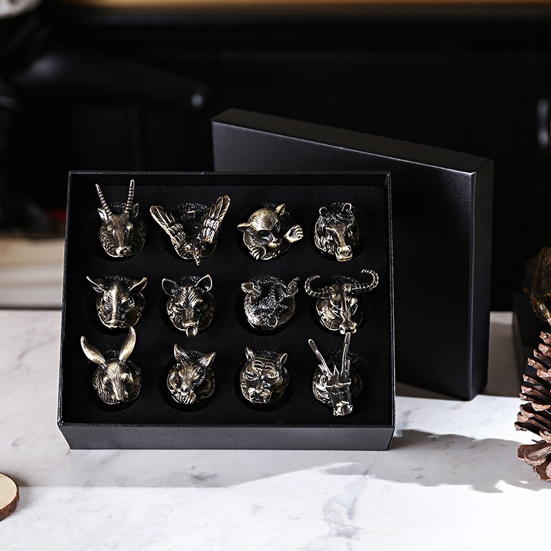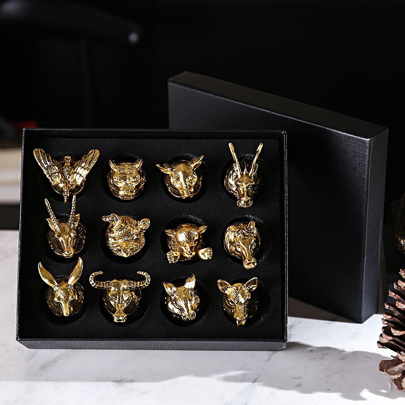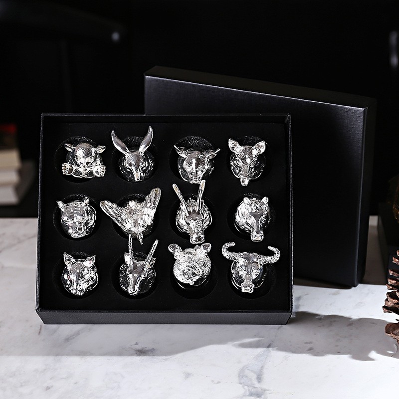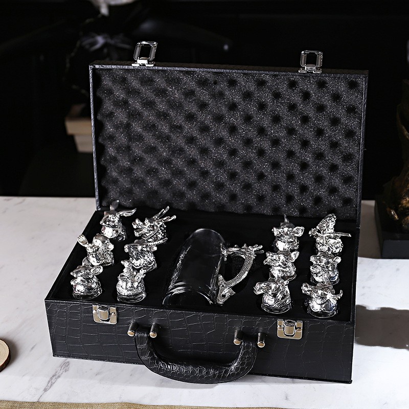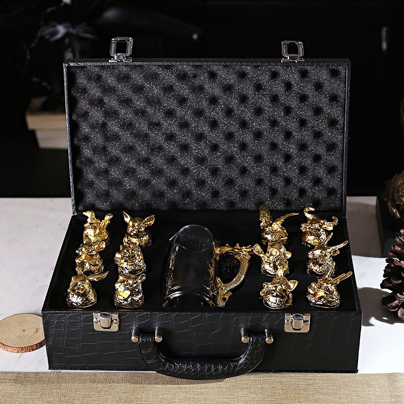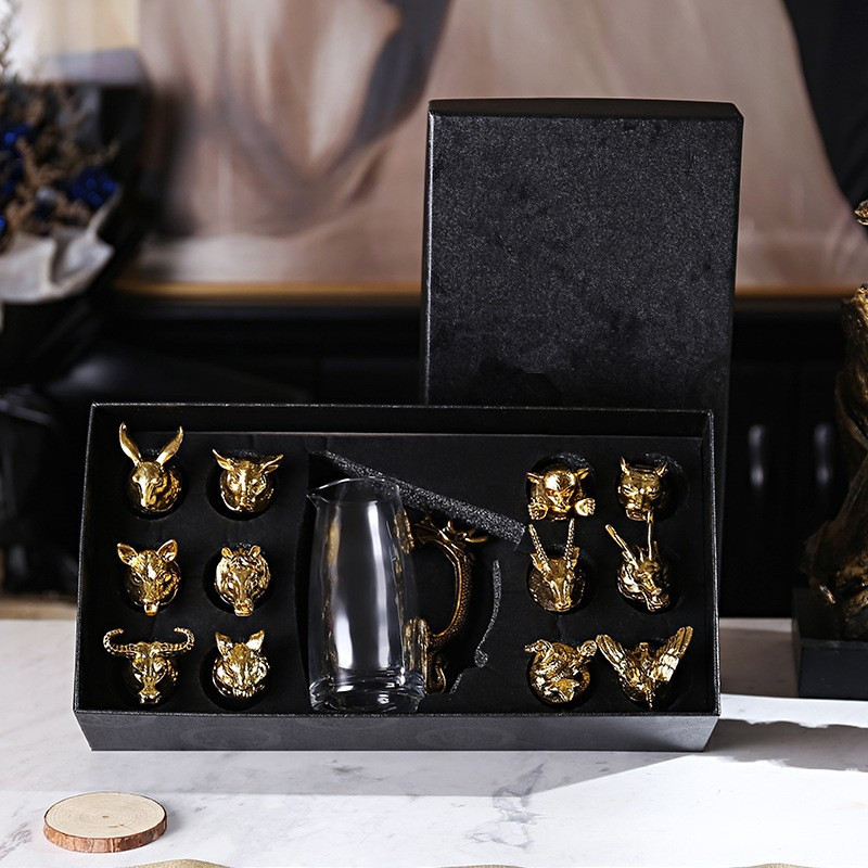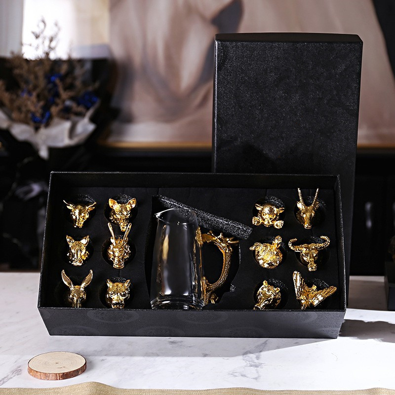 Оптовая продажа напрямую с завода: набор из двенадцати высококачественных китайских бокалов для ликера (по знакам зодиака), графин и подарочная коробка.