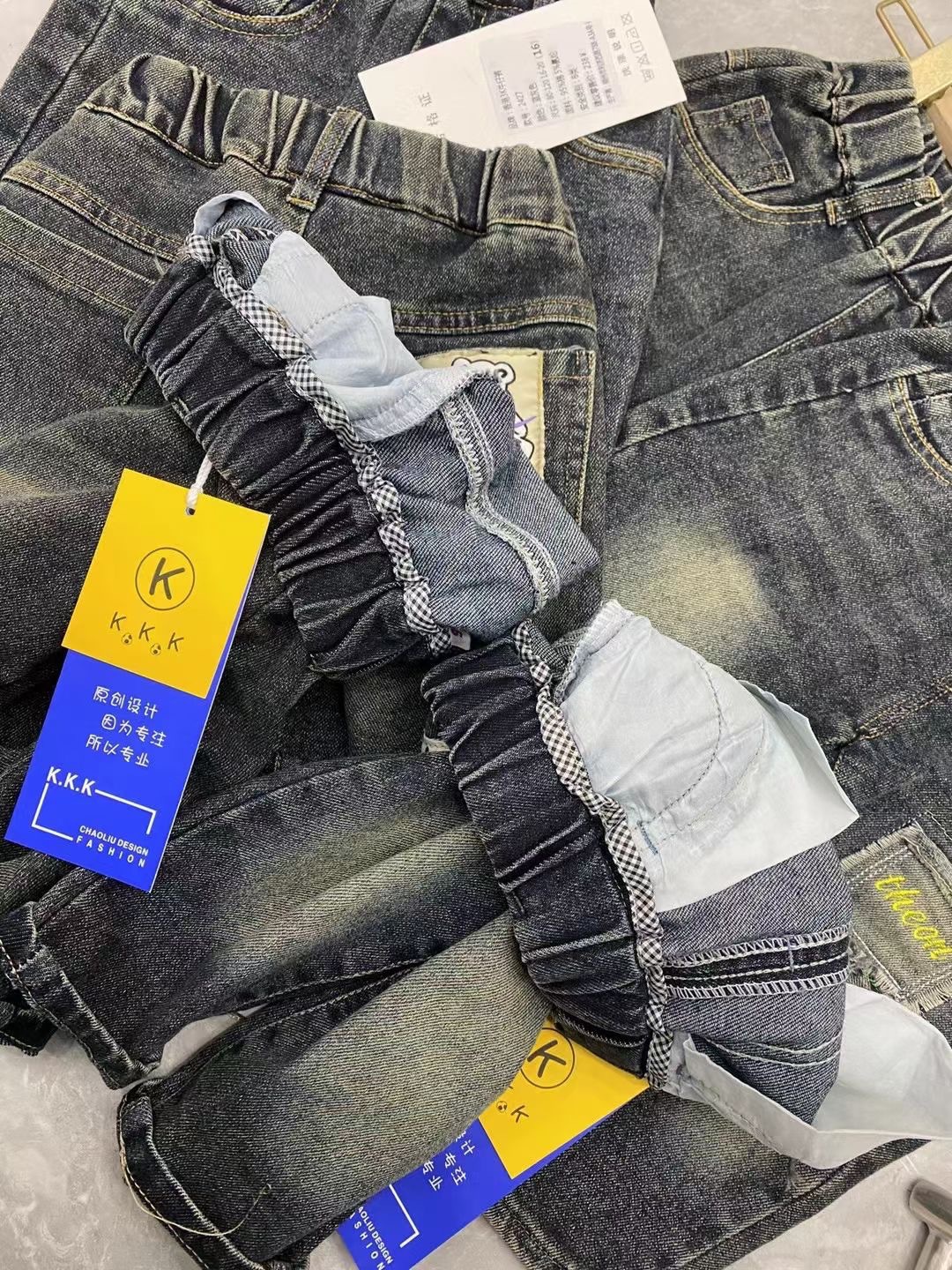 2024 Осенние брюки в корейском стиле для мальчиков и девочек, детская одежда маленького и среднего размера, распродажа, оптовая продажа джинсов с фабрики