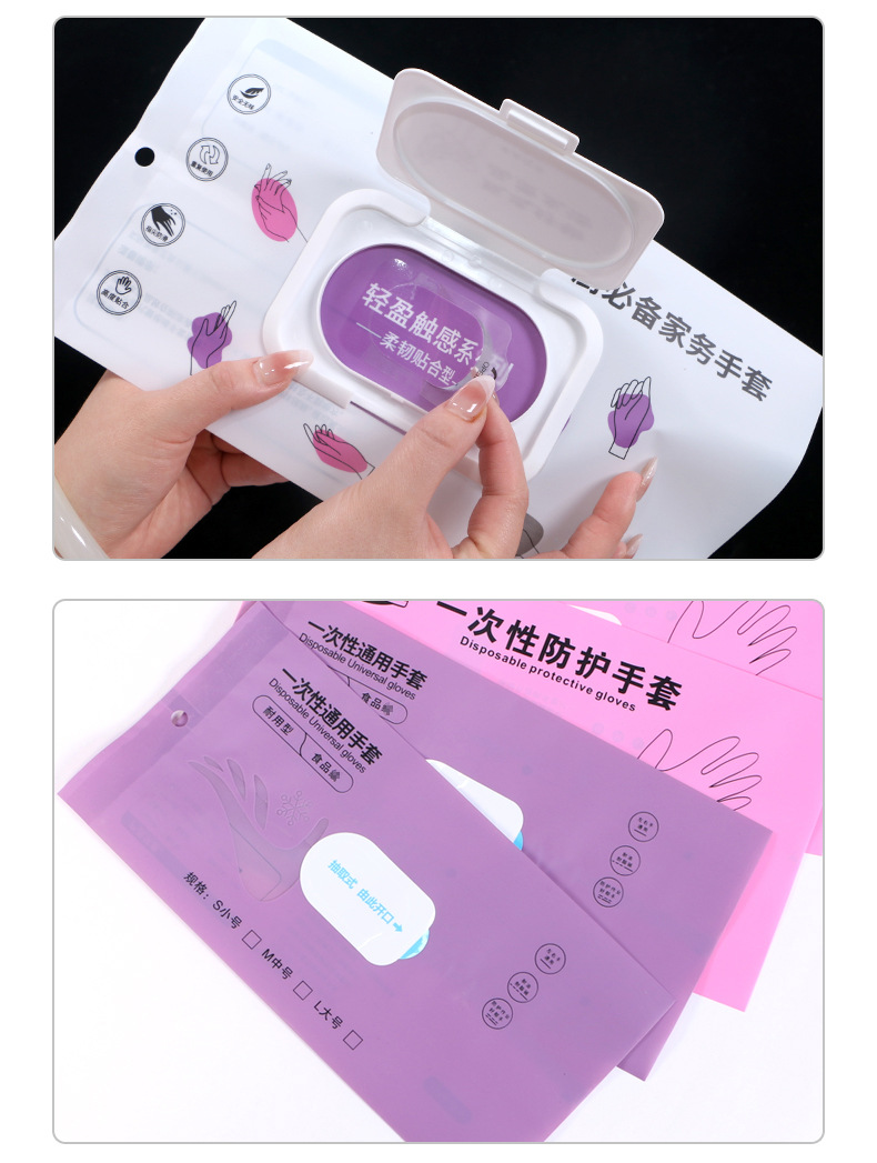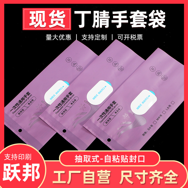 [Фиолетовый готовый запас] Самоклеящаяся упаковочная сумка для нитриловых перчаток, съемная одноразовая упаковочная сумка, готовый запас на заводе