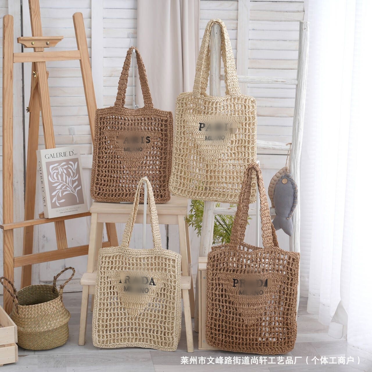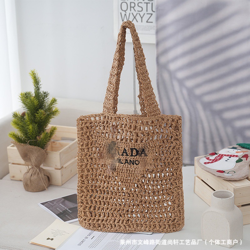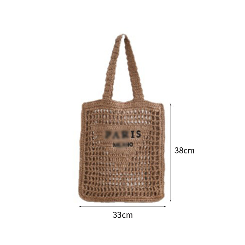 Новая летняя пляжная сумка P-бренда 2026 года для женщин, модная ретро-сумка-тоут из соломки с вырезами в стиле интернет-селебрити.