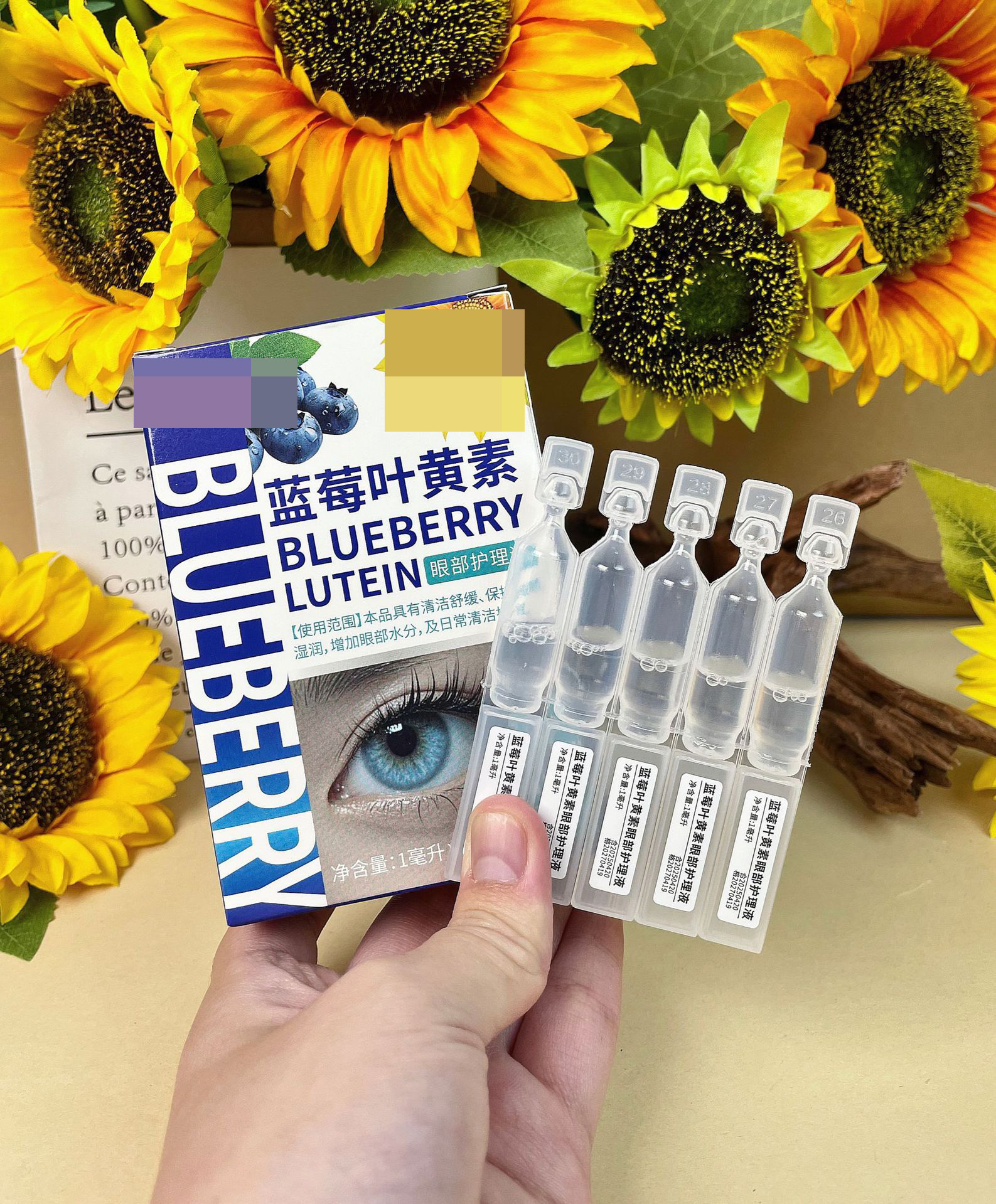 Одноразовый раствор для ухода за глазами с черникой и лютеином, питательные увлажняющие патчи для глаз, для усталости глаз, дискомфорта, зуда и сухости глаз.
