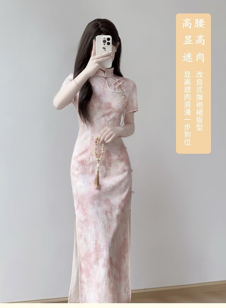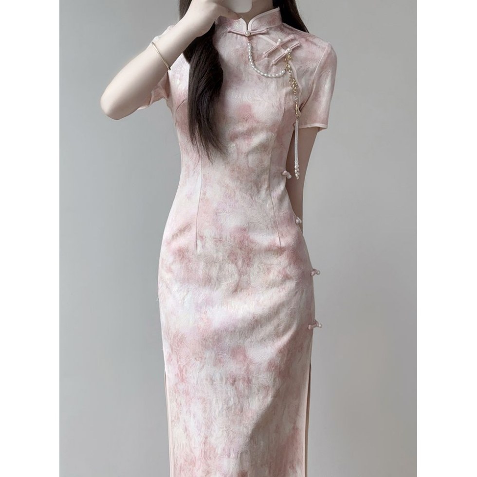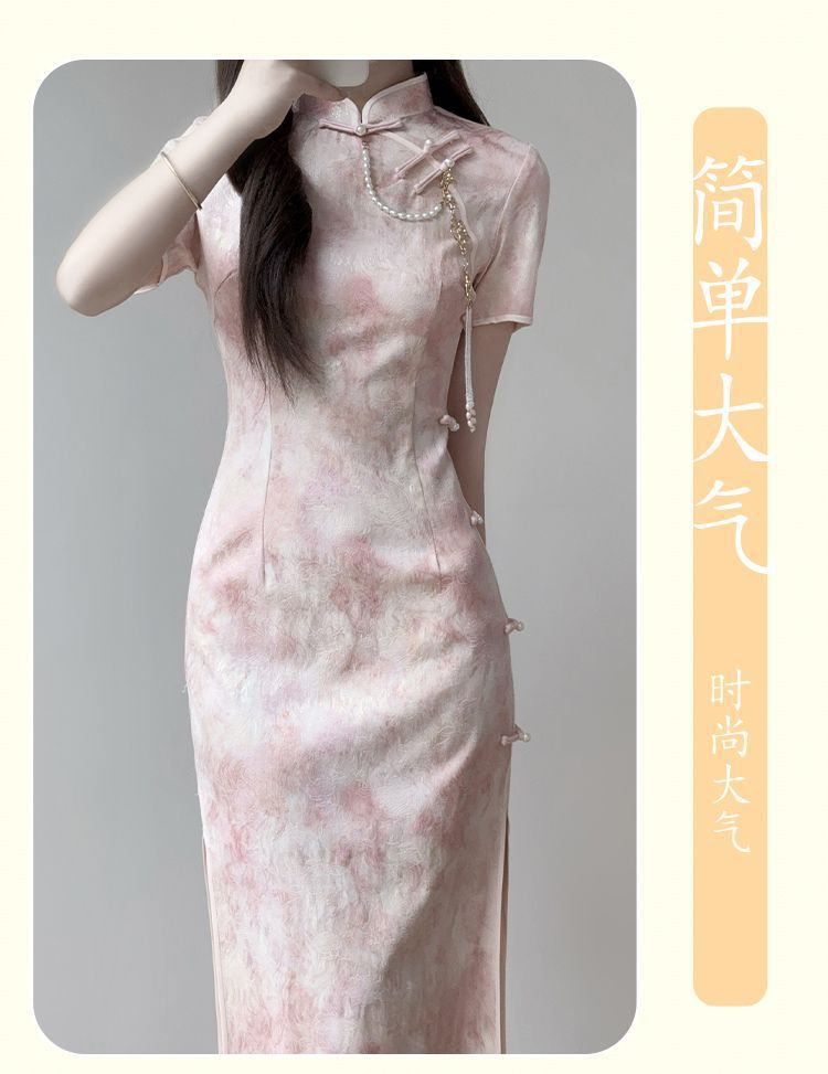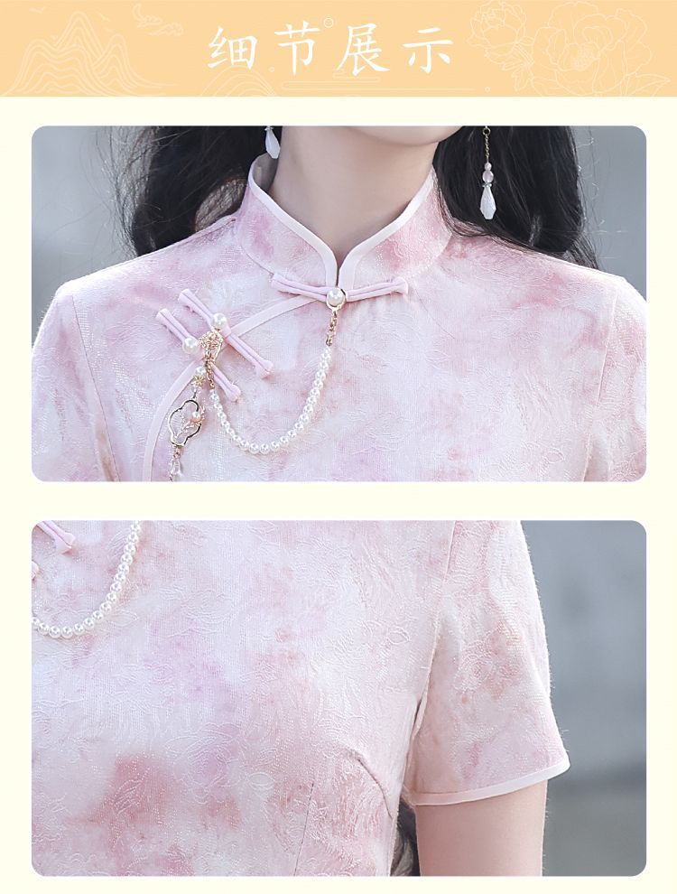 Cheongsam 2025 новый ежедневный улучшенный новый китайский стиль летнее розовое платье стройная девушка молодая платье
