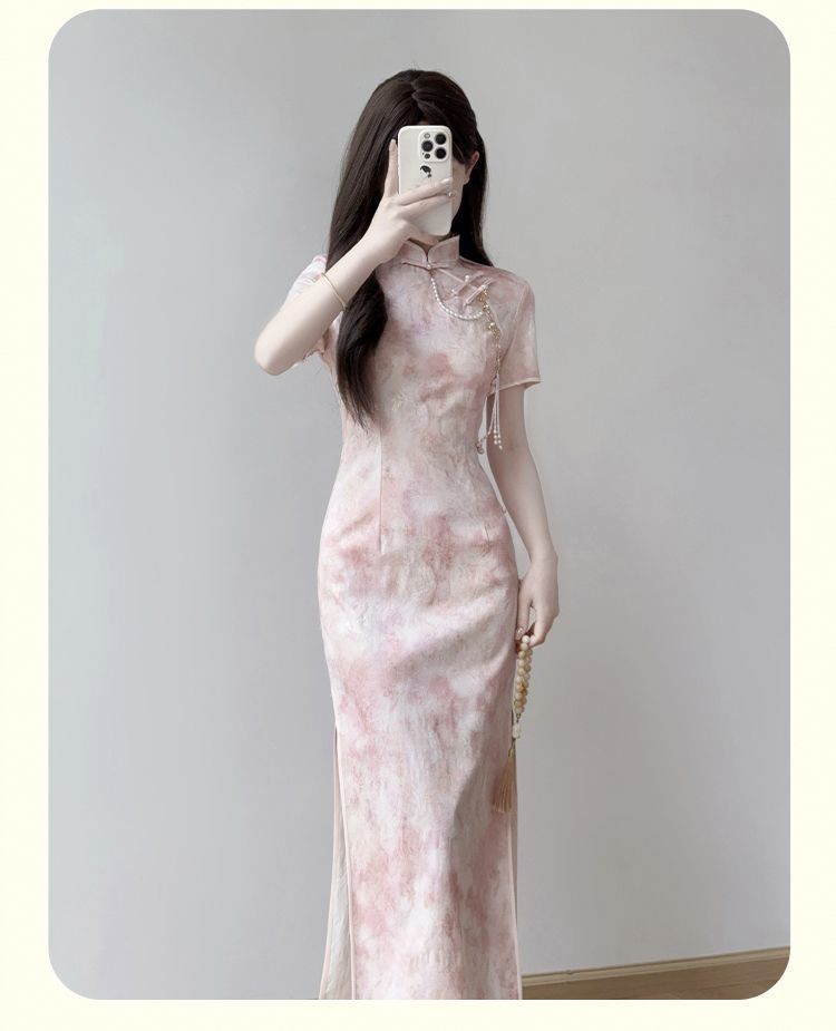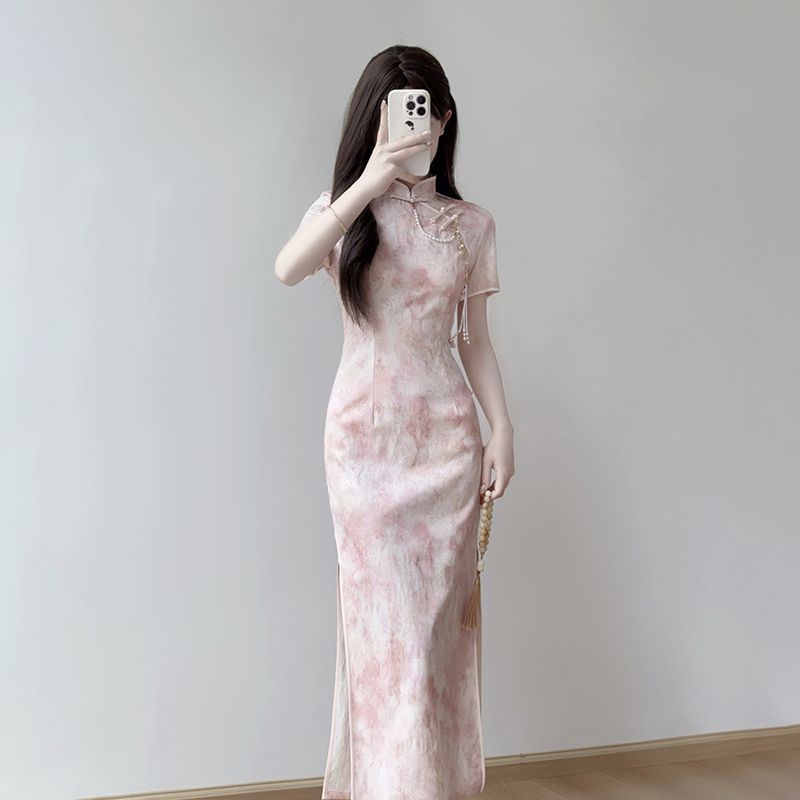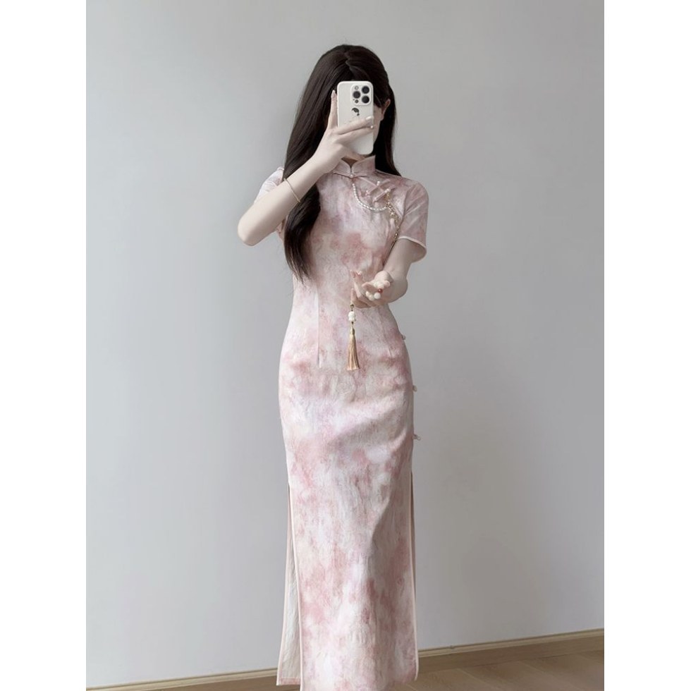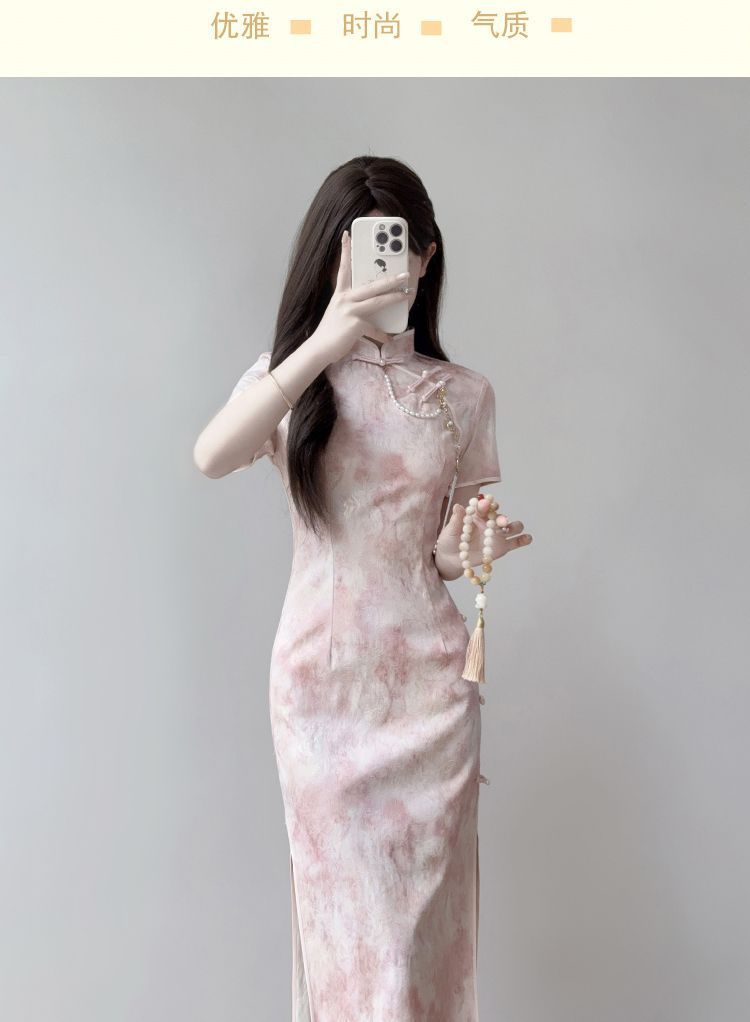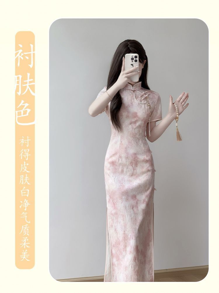 Cheongsam 2025 новый ежедневный улучшенный новый китайский стиль летнее розовое платье стройная девушка молодая платье
