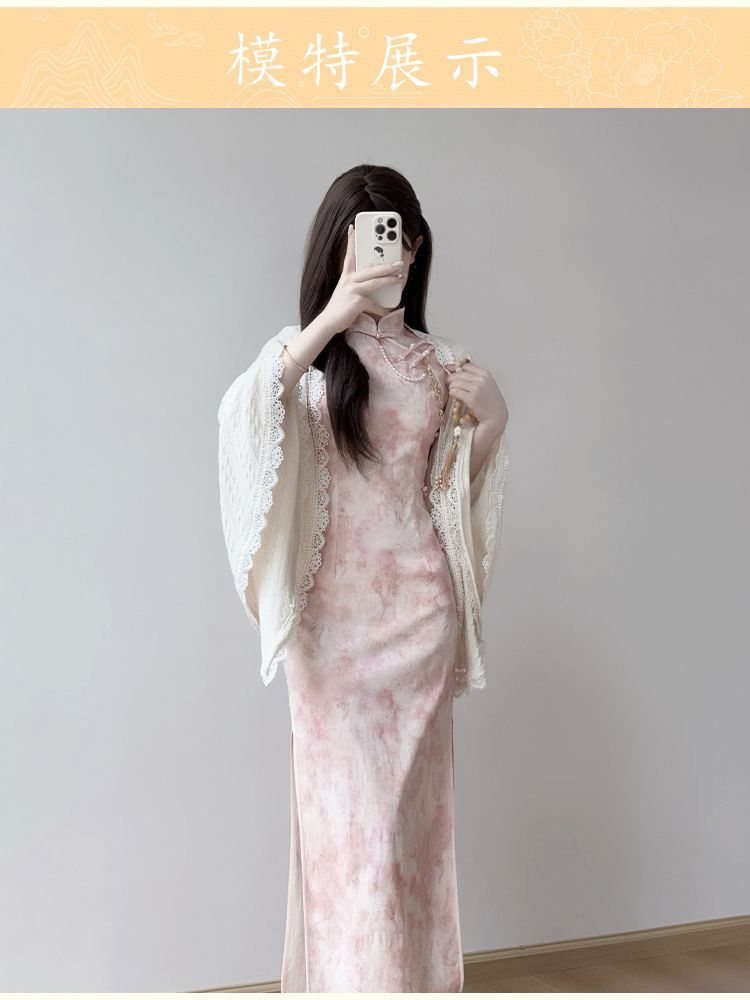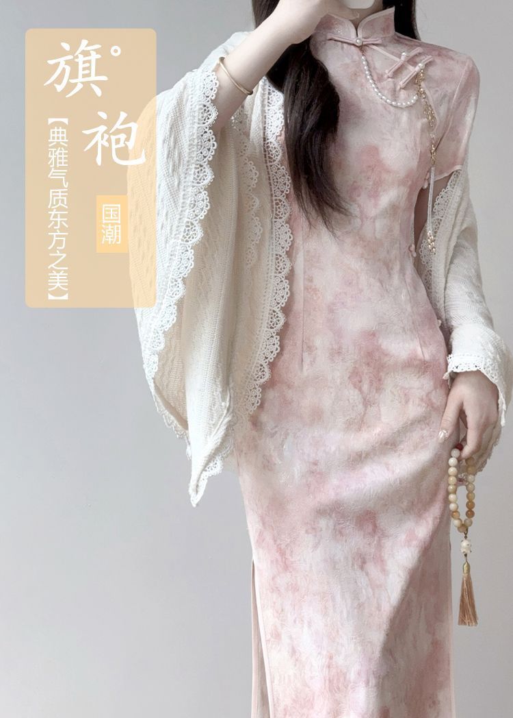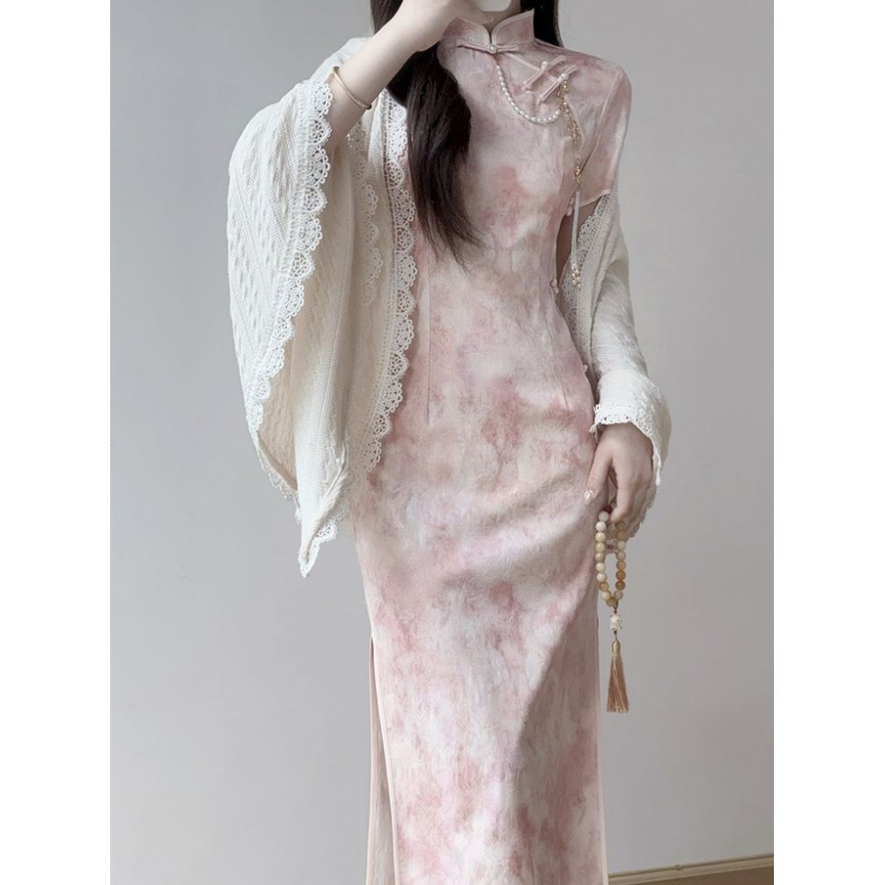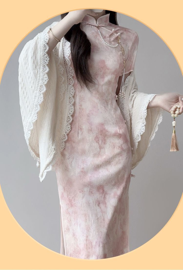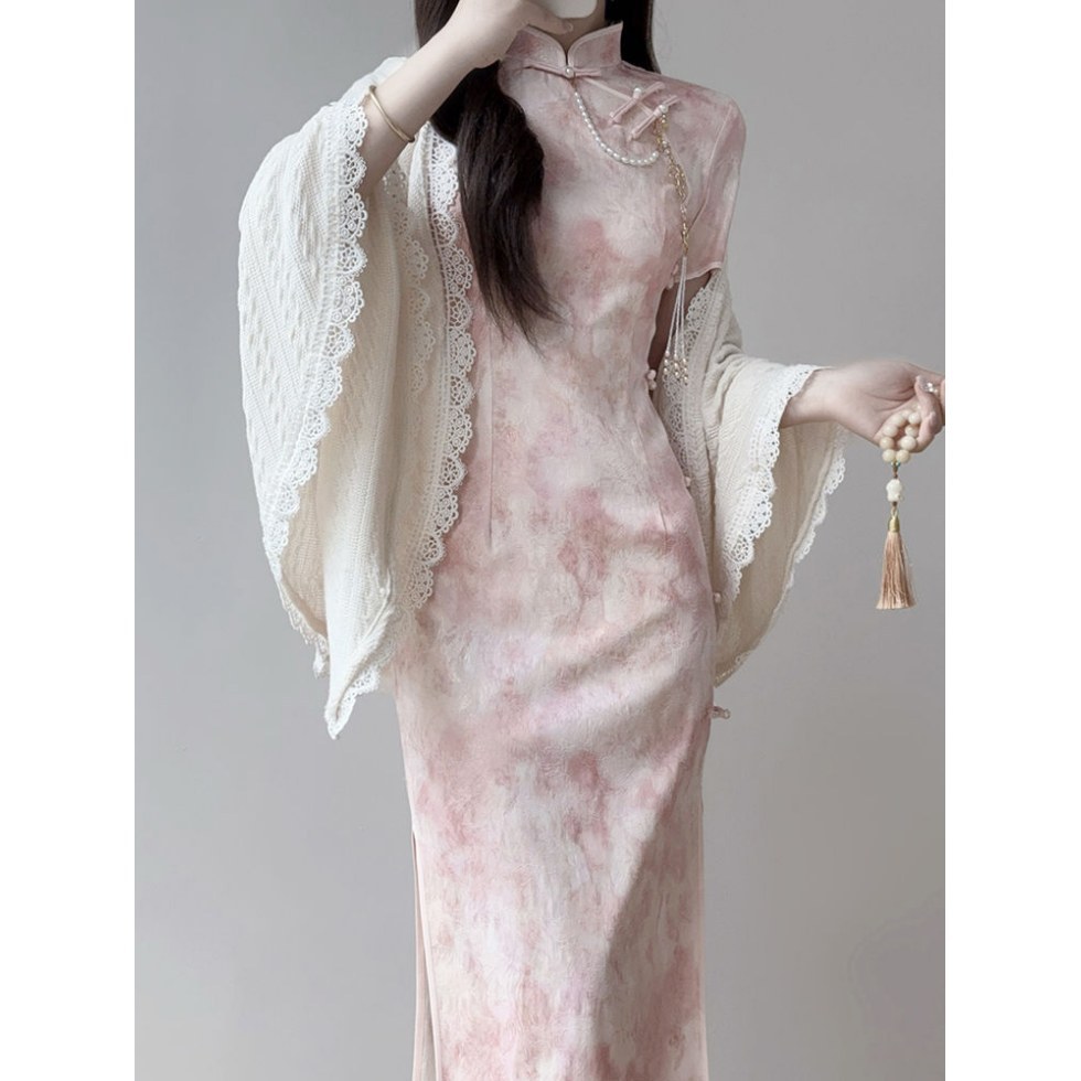 Розовый чонсам [без аксессуаров]; Белоснежная шаль